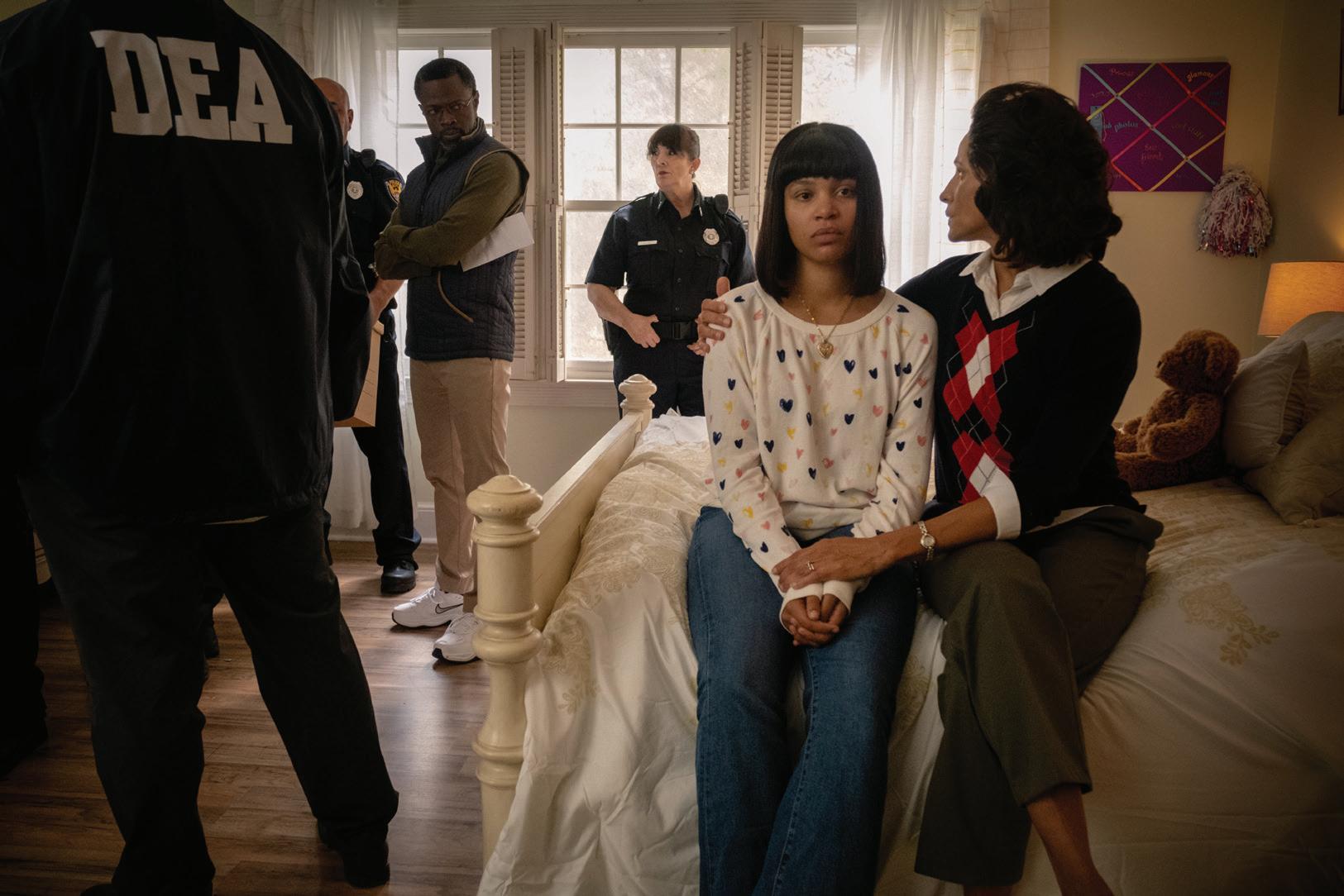 A image from the film “Kemba” depicts the moment a young Kemba Smith faces law enforcement at her family’s home, highlighting the emotional and legal challenges of her story. The film will be screened 6 p.m. Thursday, Nov.