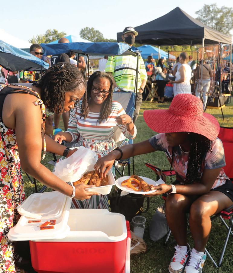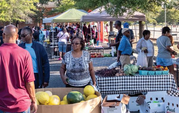 pastor, the Rev. Ralph Hodge buys fresh produce at the Broad Rock Farmers’ Market that was part of the event. Rounding out the attractions were a bounce house, video game truck, a free CPR class and lunch.