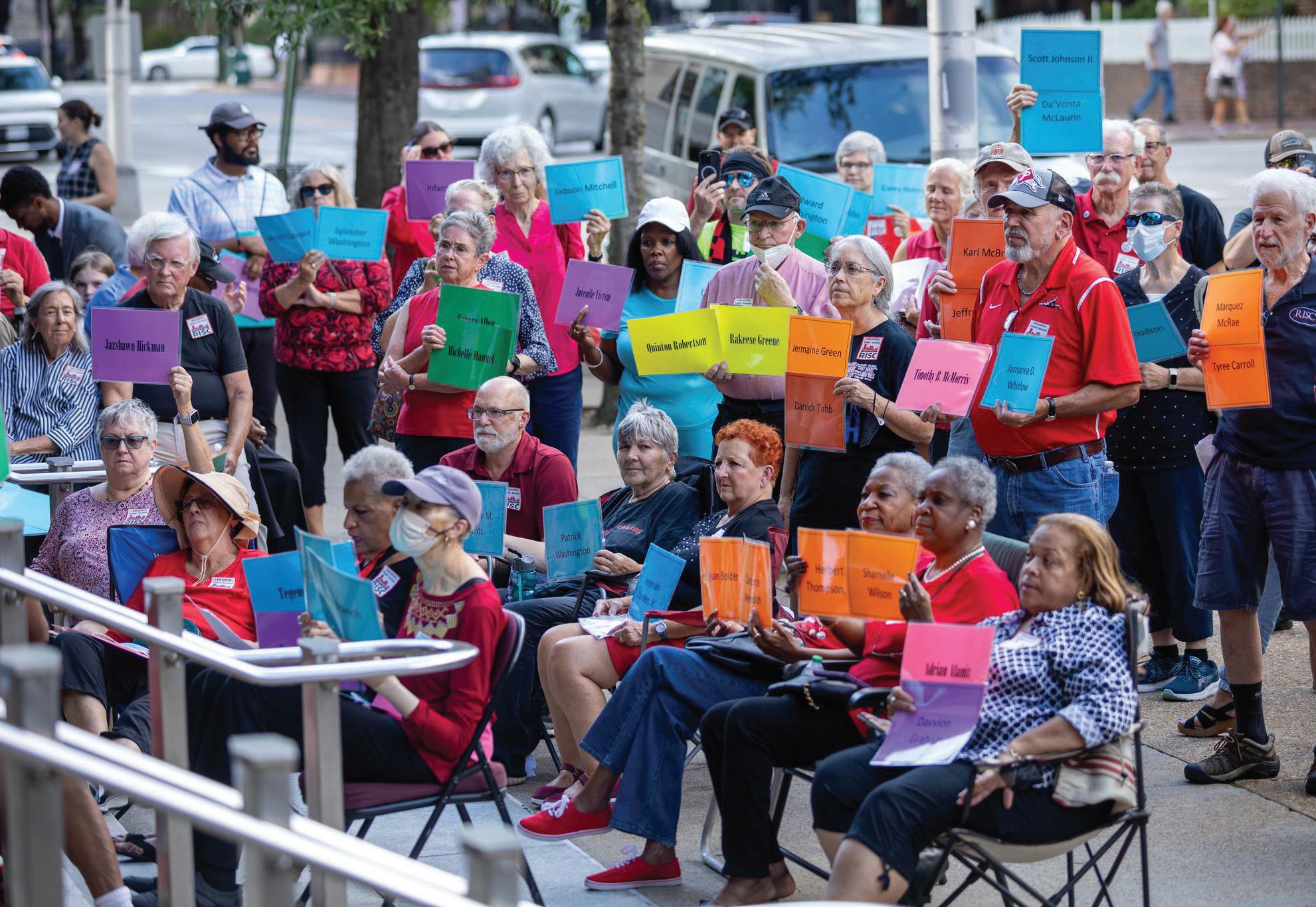 More than 100 members of Richmonders Involved to Strengthen Our Communities (RISC) and the Richmond chapter of Virginia Caucus of Rankand-File Educators (VCORE) assembled outside City Hall’s Marshall Street entrance for a prayer vigil Tuesday evening while waiting for news that the city would consider the use of a Group Violence Intervention plan to ensure a safer city.
