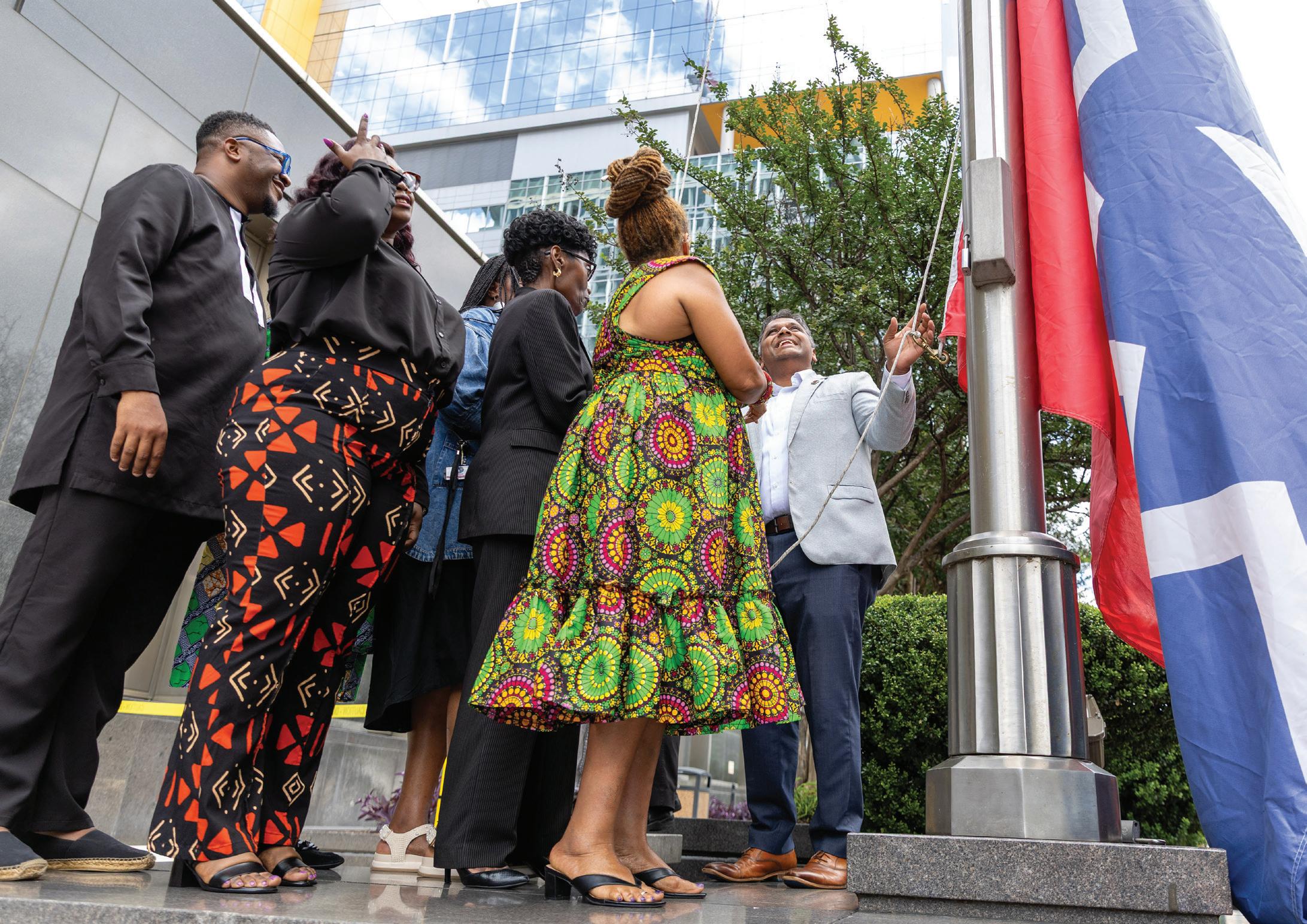 Stoney and former Virginia Gov. L. Douglas Wilder. Wilder expressed pride in attending and reflected on the encouragement from his mother that fueled his achievements, saying, “The reason I knew I could win (as governor), because my mother always told me you could be anything you wanted to do.” The program included dance performances and themed refreshments, photo opportunities and other activities. The celebration concluded with presentations to the Grand Master. A wreath-laying ceremony took place the following day at the Masonic monument on the grounds of First Baptist Church on Harrison Street in Petersburg.