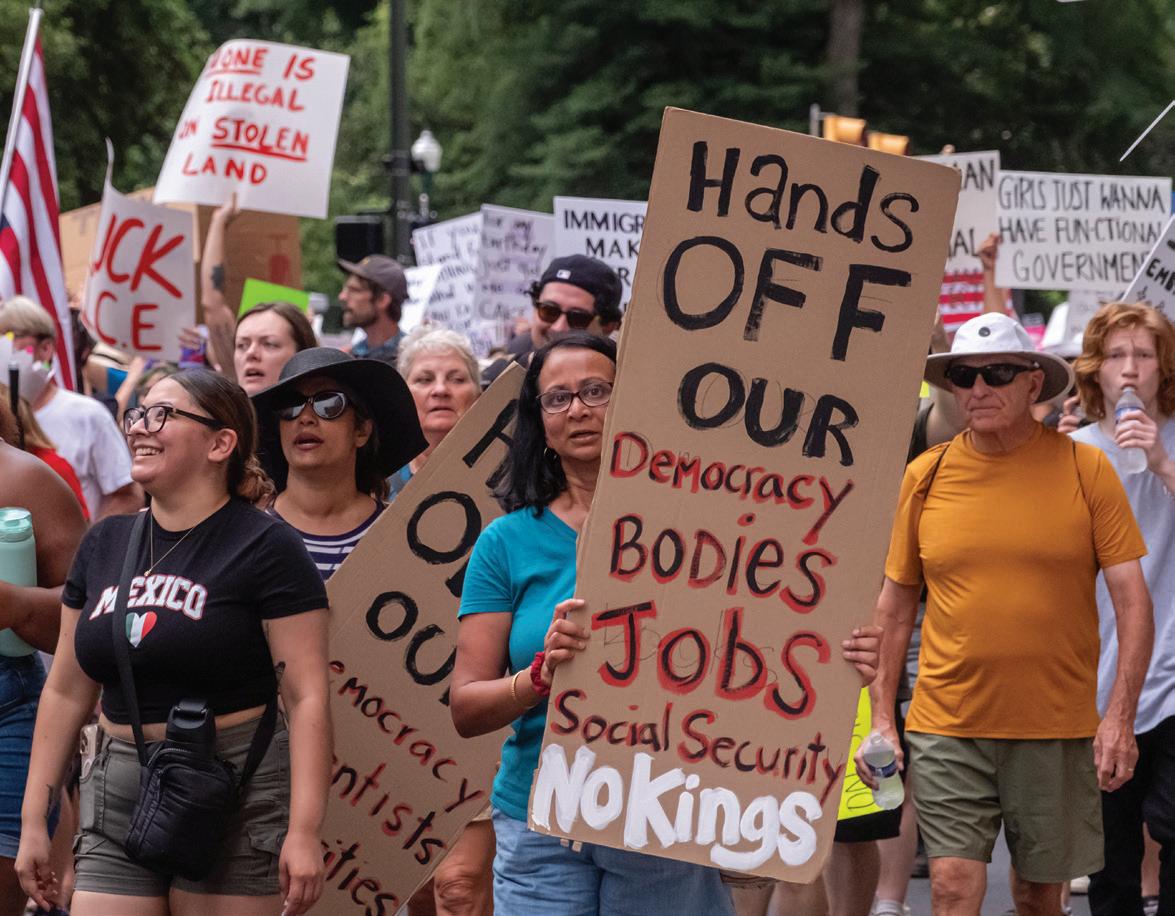 Downtown Richmond rang with chants and cheers Saturday as thousands gathered for the city’s No Kings Day of Defiance, part of a nationwide protest against the Trump administration. The diverse crowd filled Capitol Square, gathered in Kanawha Plaza and marched through downtown, at times bringing traffic to a standstill as their chants and signs stretched across the evening.