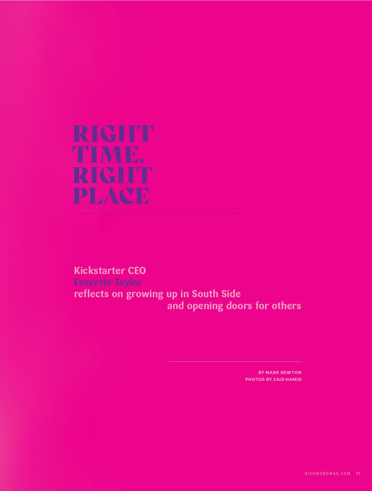 ing firm Millisense, named for his mother, under ET Enterprises. His success drew the a ention of Sticker Mule, a custom decal company, which Taylor joined as chief marketing officer at 25 years old. He would go on to successfully manage marketing efforts for Artsy, a sales platform for fine art, which landed him on a Forbes list of the “World’s Most Influential CMOs” and led to a profile in the Financial Times. This buzz led Kickstarter to consider and then hire him as CEO in September 2022.