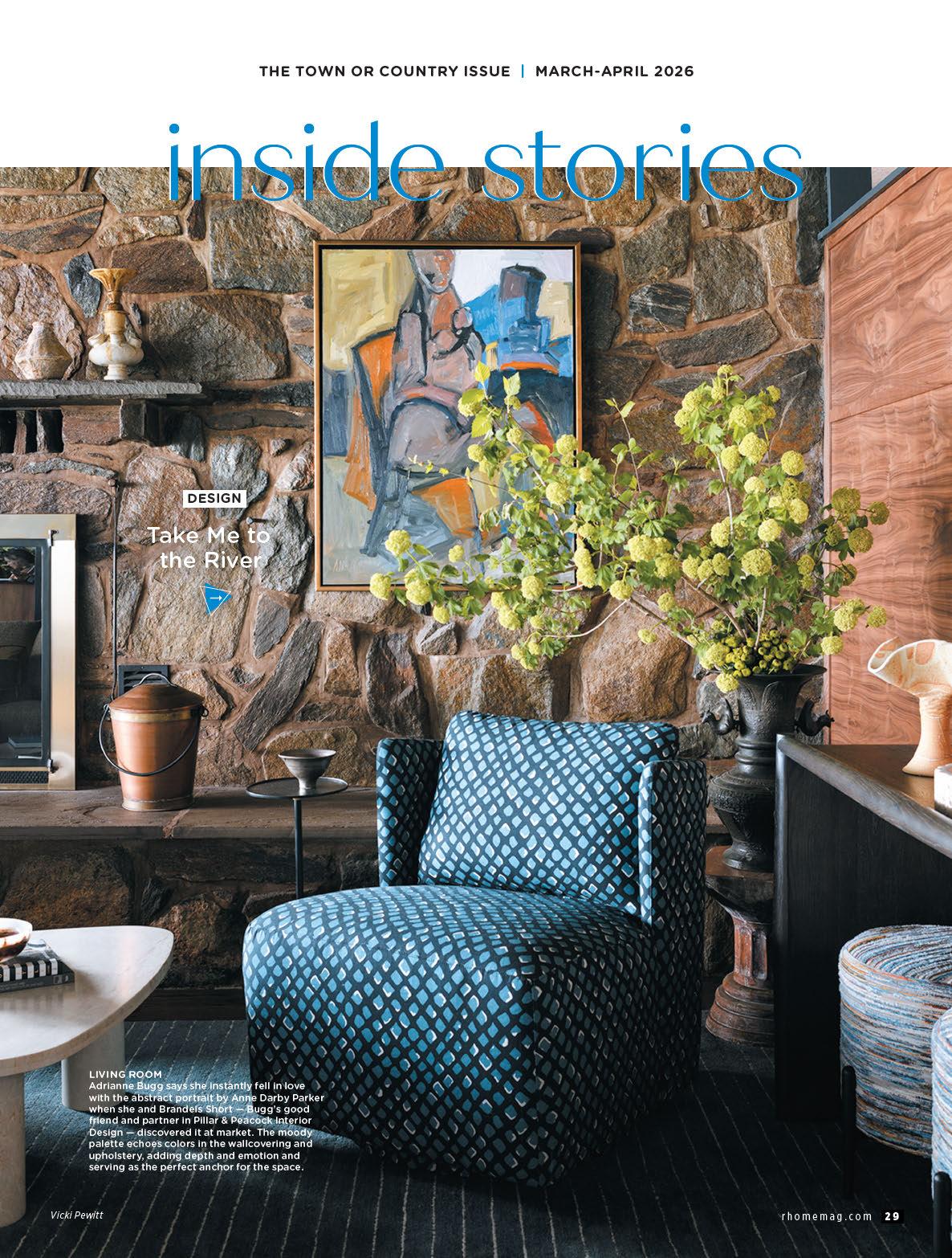 “Camp was this fashion movement known for really cool, over-the-top details,” Adrianne says. “I thought it would be fun to nod to the activity on the property and the fact that the house isn’t what you would expect. It’s a little more elevated than you would think for a river house. ‘Camp’ made sense for that duality.”