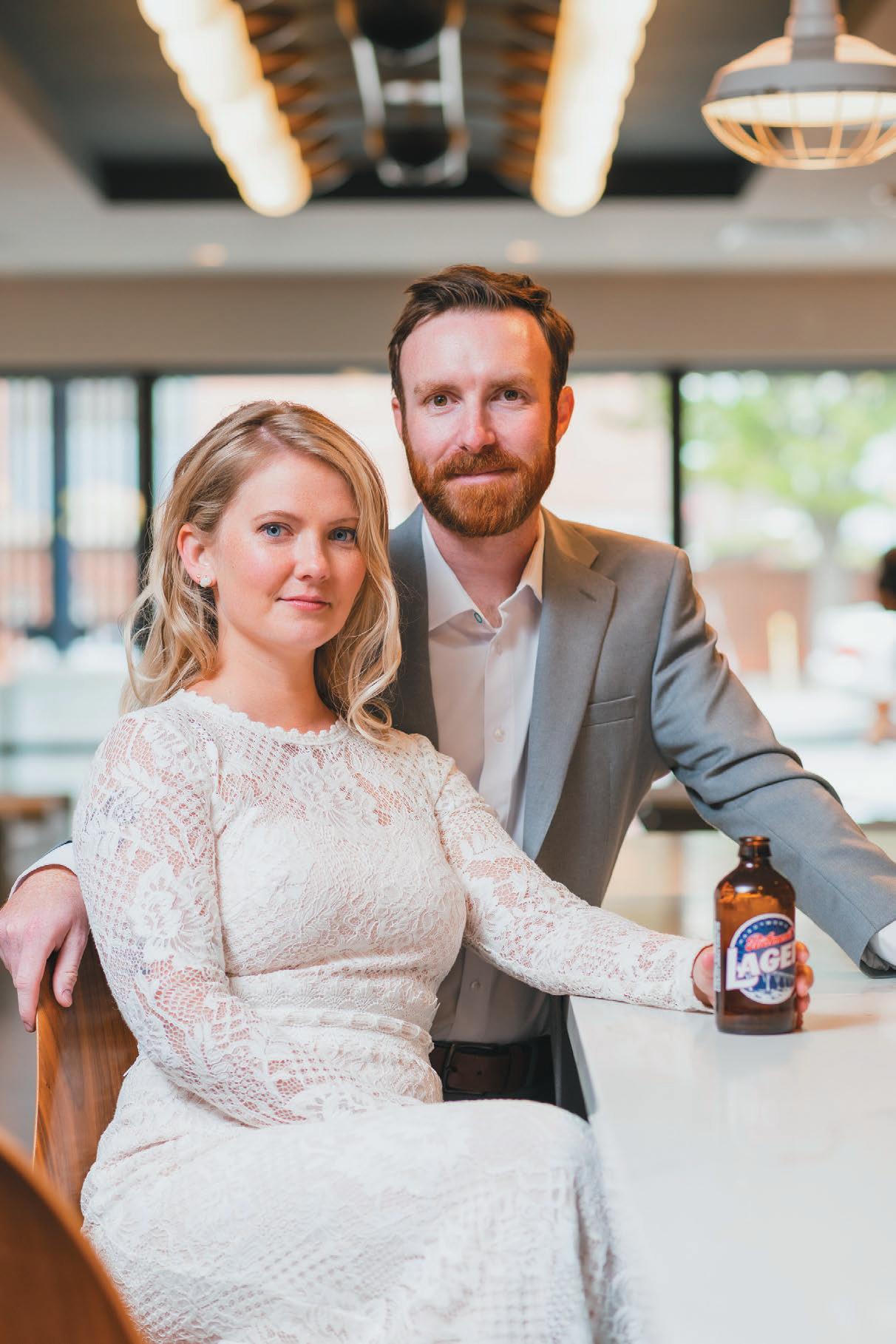 Chanel and Taddy took photos at Common House’s rooftop bar. The bride’s lace gown, which features a low back, and veil were from Avenir Bridal Boutique. The groom’s suit was from Men’s Wearhouse.