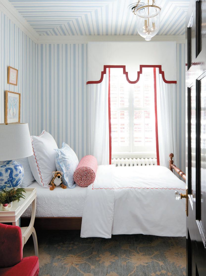 “I might choose something more geometric or with di erent colors, but they all echo back to each other and to the scheme of the house,” she says. “Because the furnishings were simpler, the art was the final touch that brought it all together. It was a true joy finding the right pieces; it feels like you’ve found the last piece of the puzzle.”
