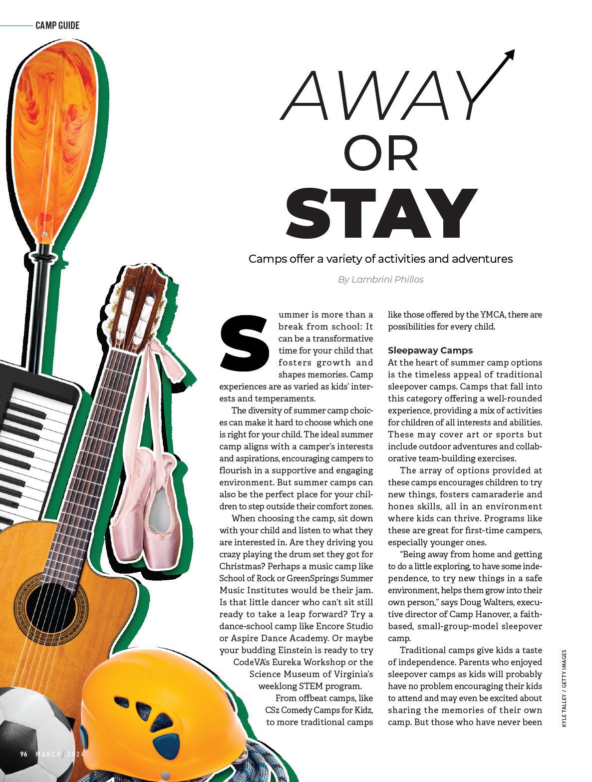 *Brilliant Summer at St. Catherine’s Coed o erings include Young Explorers for age 4 to rising first graders, Exploration camps for second through 12th graders and Sports camps for first through 12th graders.2024 info on website. 6001 Grove Ave., 804-888-7401, orst.catherines.org/ summer.