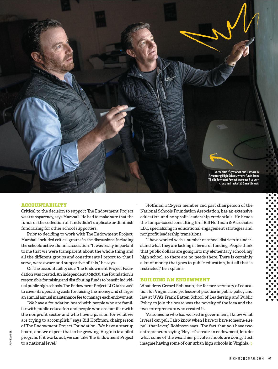 gazes around the Richmond Ballet’s sun-brightened boardroom and considers the promotions for past shows. “You sit in this room and see the posters from London, New York and China, and I’m just so lucky, so blessed, to be plunked down in this place where there was a community of, at that point, pre y much board [member] ladies who had a passion.”