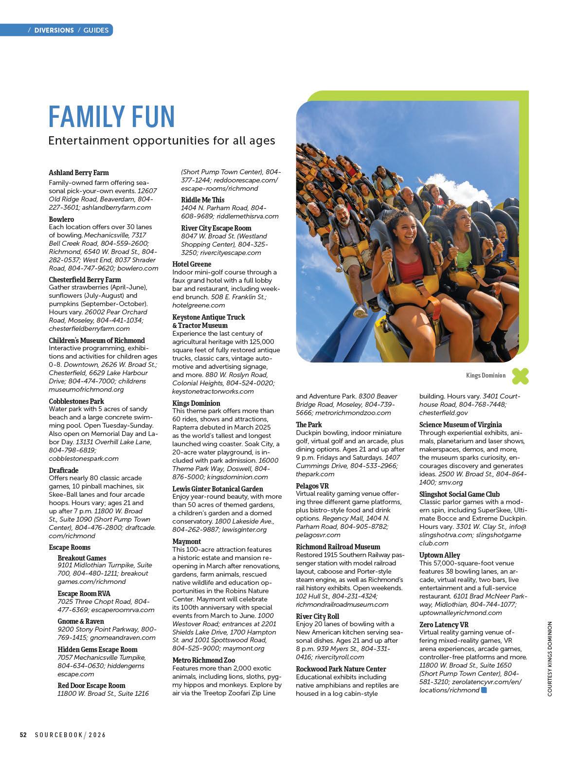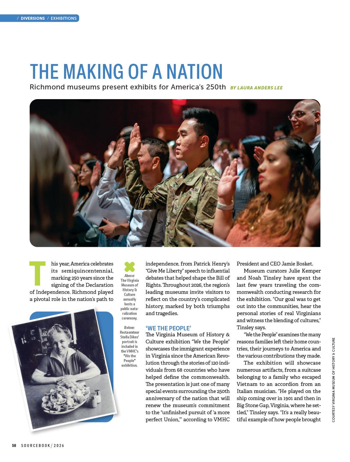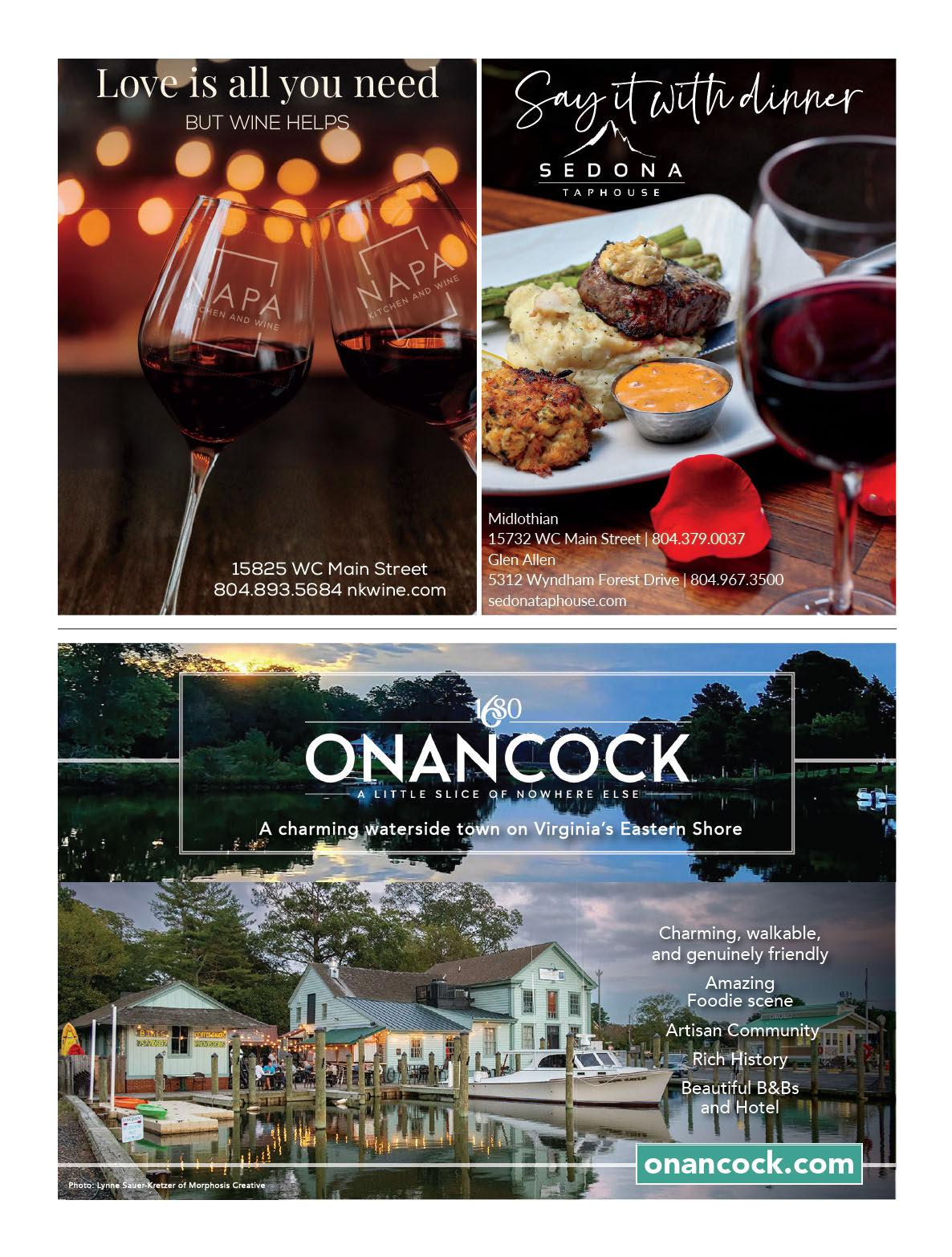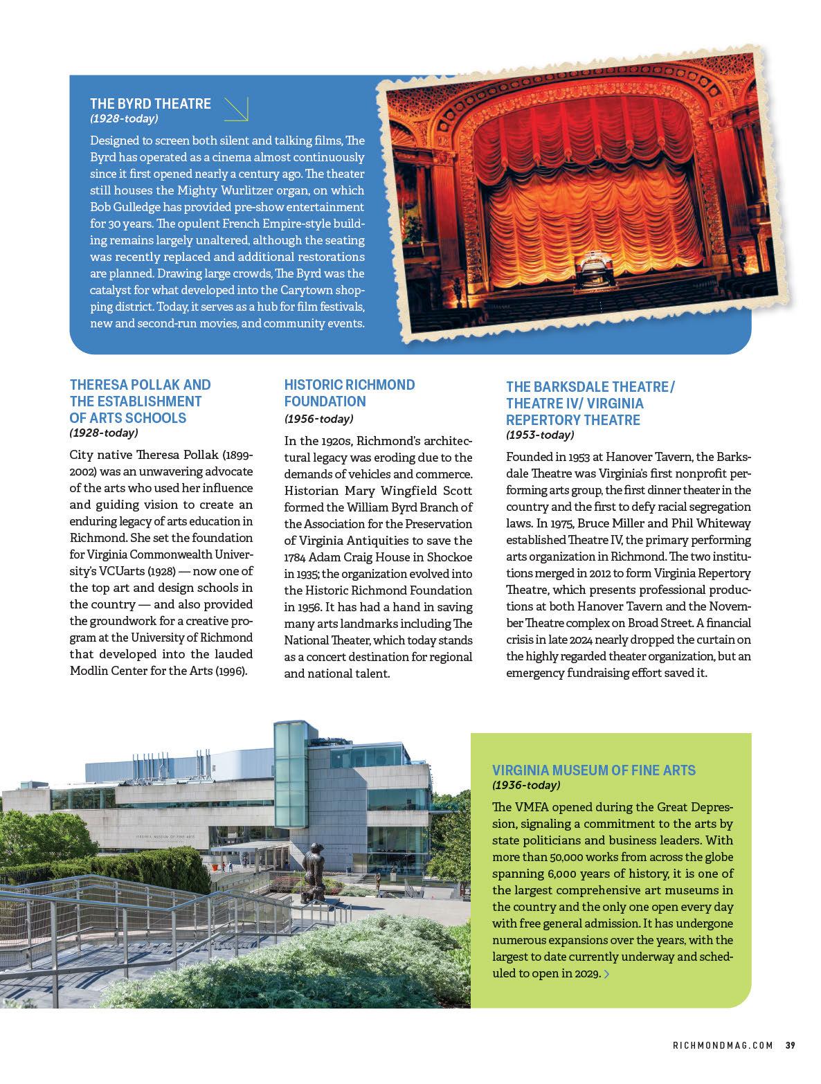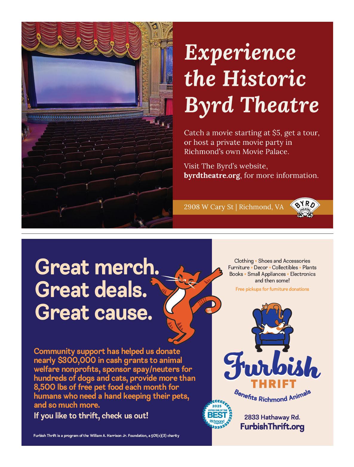 Connects visitors to America’s past through the story of Virginia. After a $30 million renovation in 2022, the museum o ers additional galleries, a refurbished research library and more. 10 a.m. to 5 p.m. 428 N. Arthur Ashe Blvd., 804-340-1800; virginiahistory.org