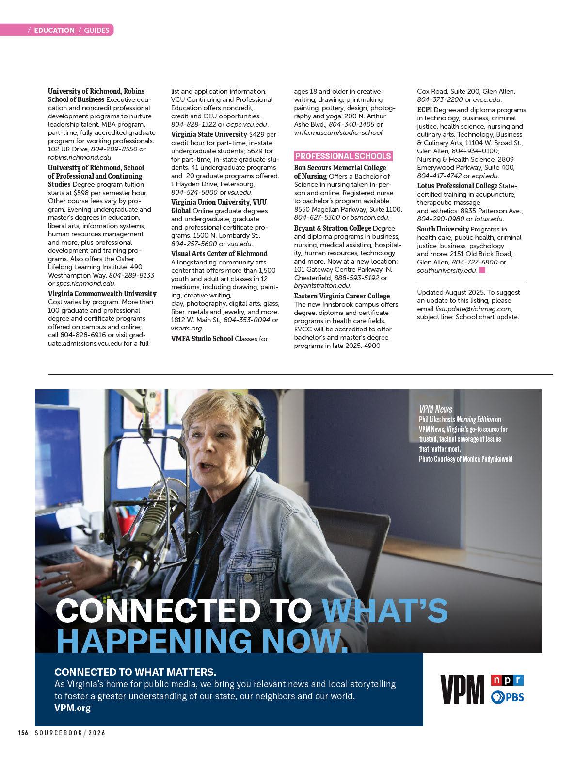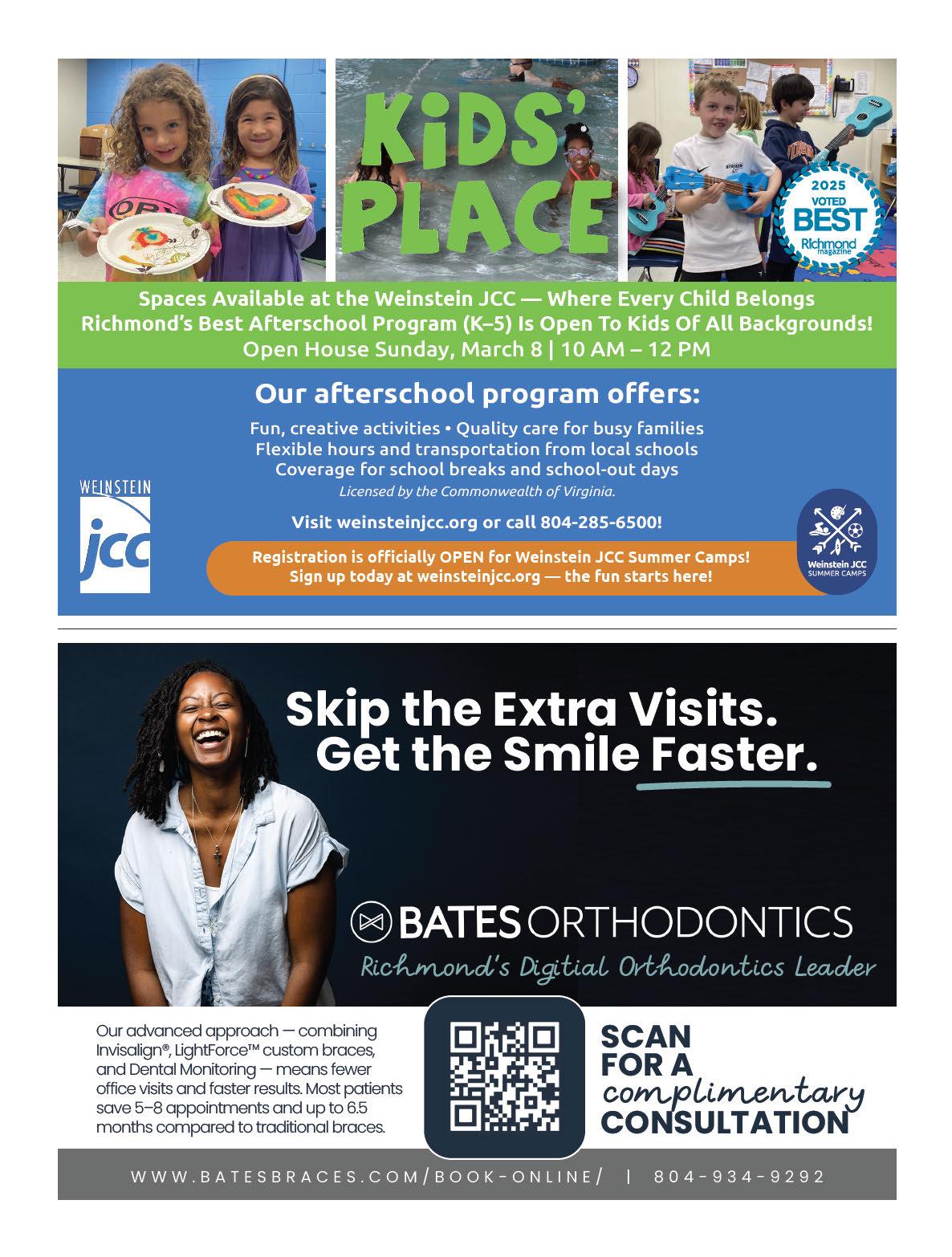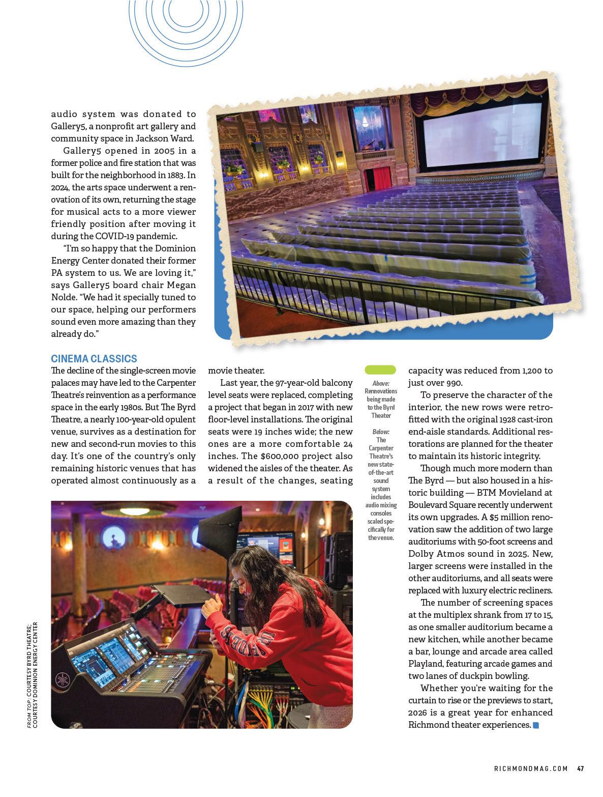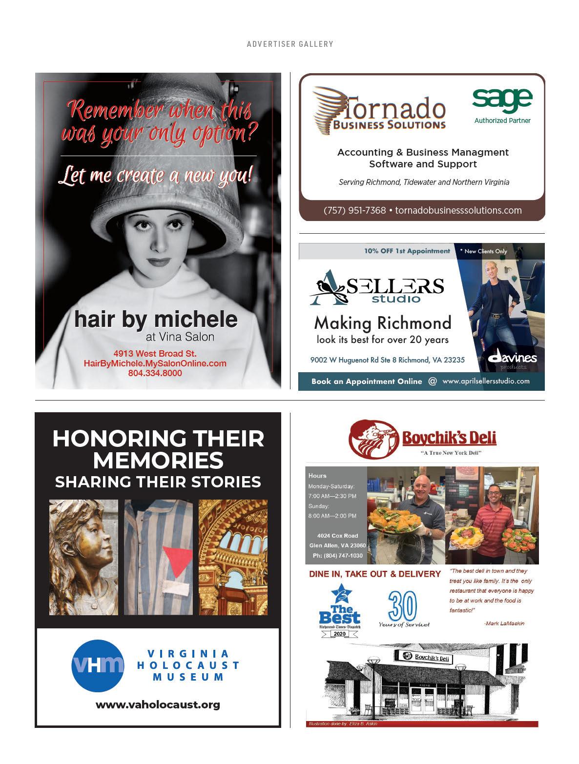 Connects visitors to America’s past through the story of Virginia. After a $30 million renovation in 2022, the museum o ers additional galleries, a refurbished research library and more. 10 a.m. to 5 p.m. 428 N. Arthur Ashe Blvd., 804-340-1800; virginiahistory.org