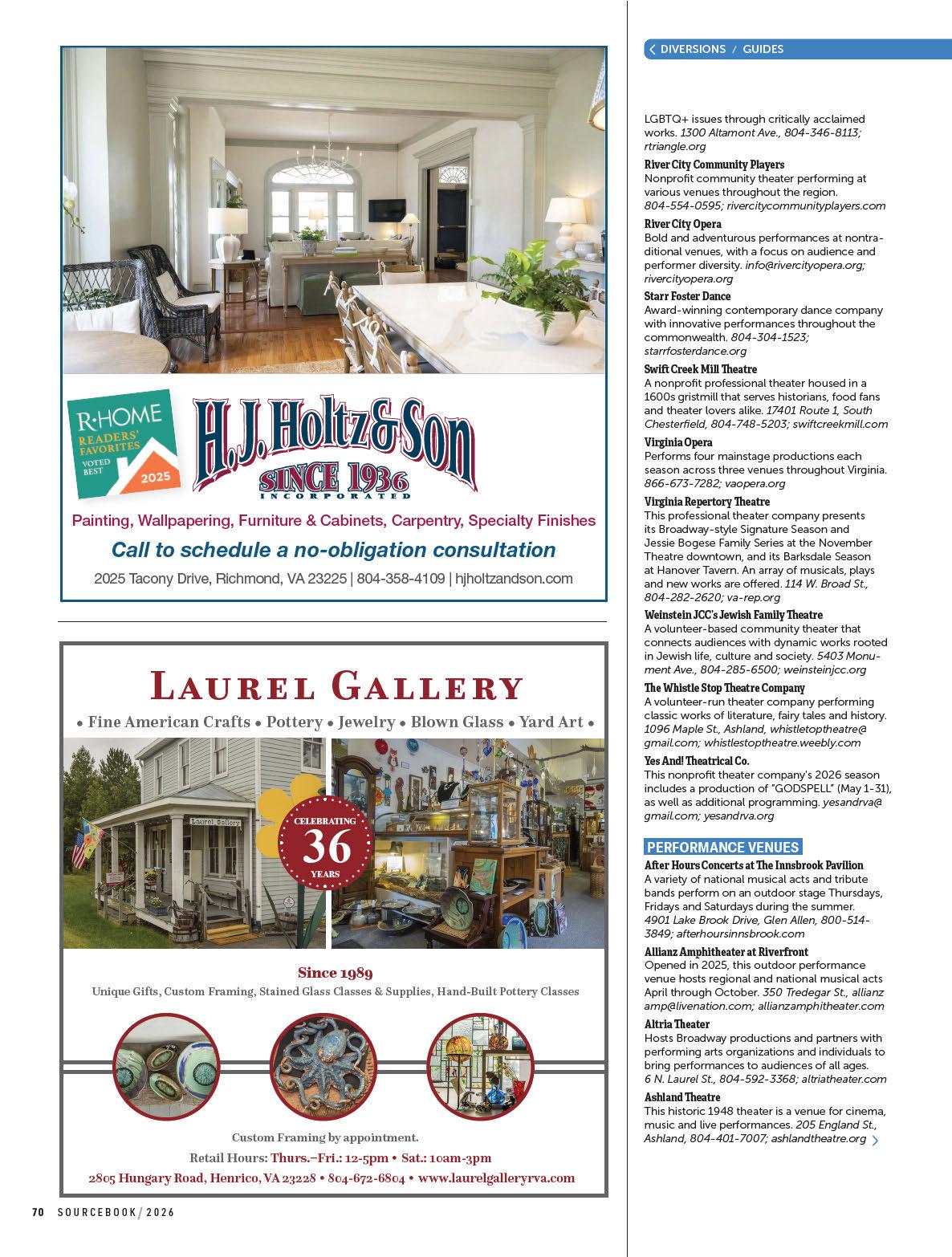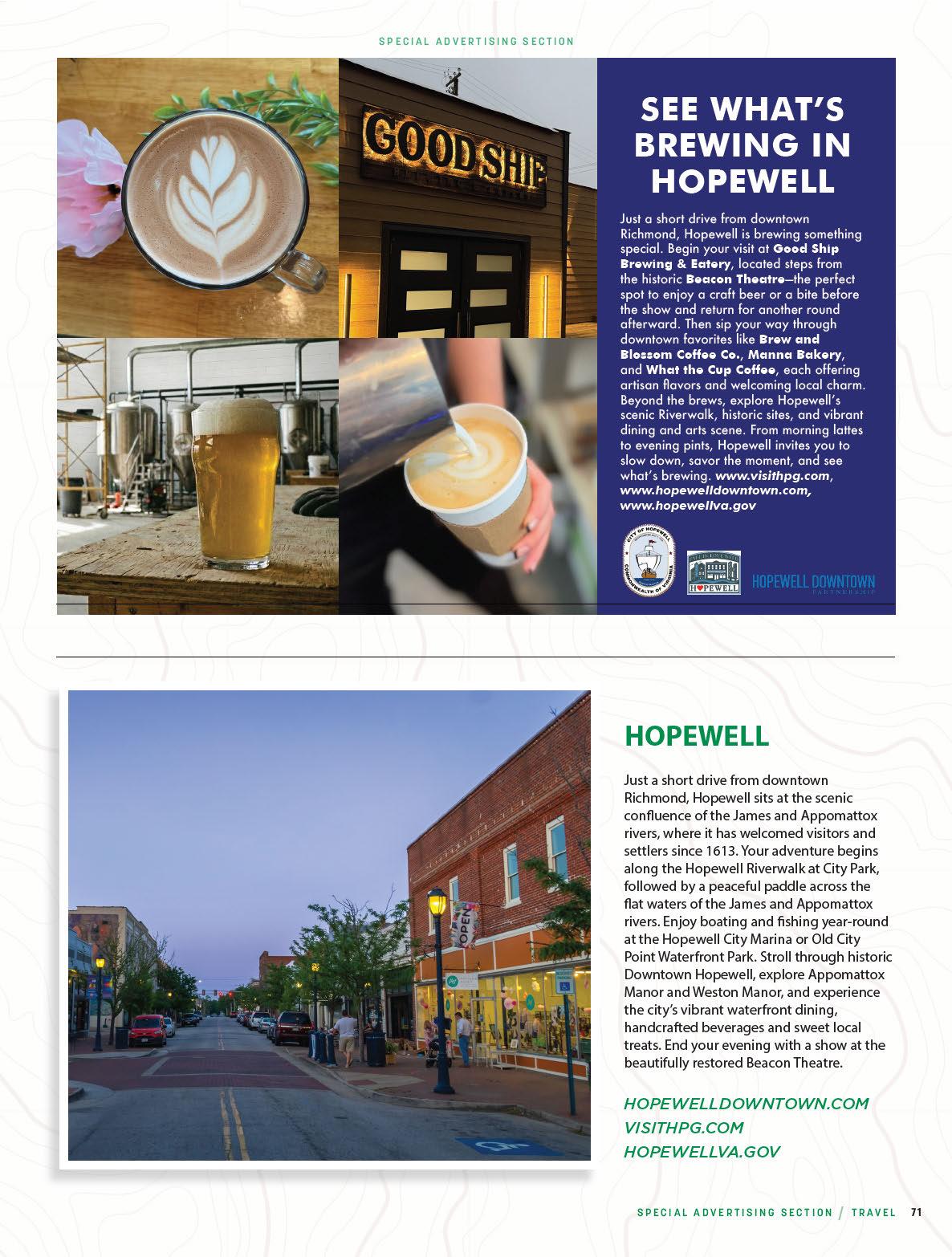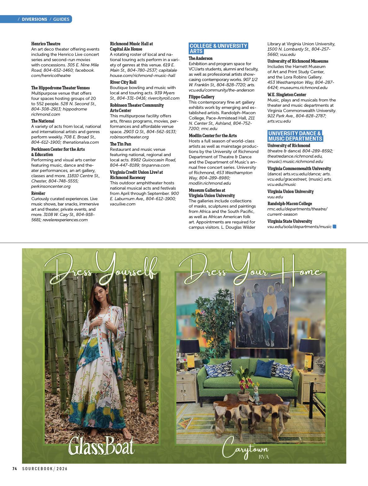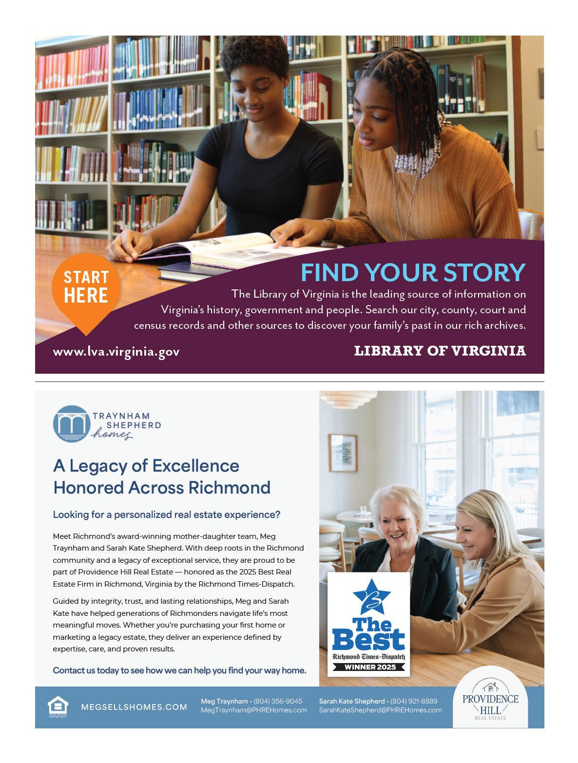 Explore the story of Virginia as told through 126 million books, documents, photographs, maps, works of art, newspapers, recordings, films and o cial records. Exhibitions open to the public; see website for hours and dates of operation. 800 E. Broad St., 804-692-3500; lva.virginia.gov