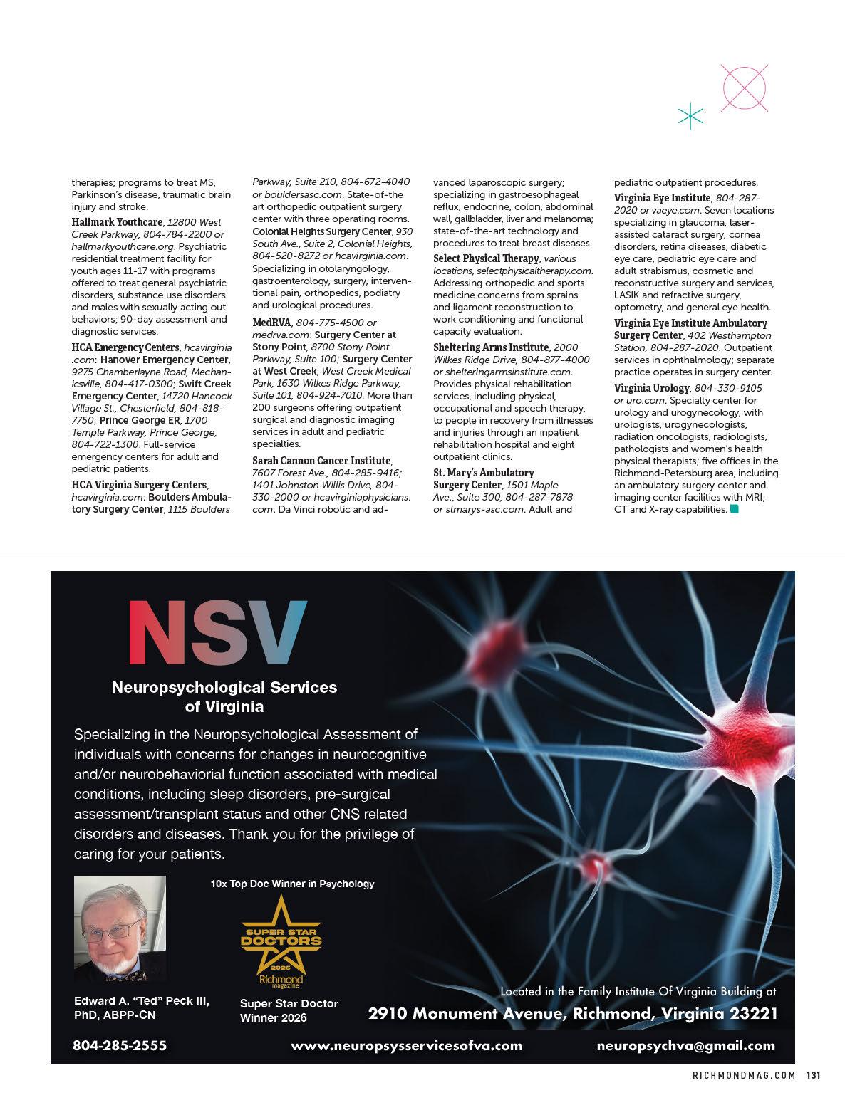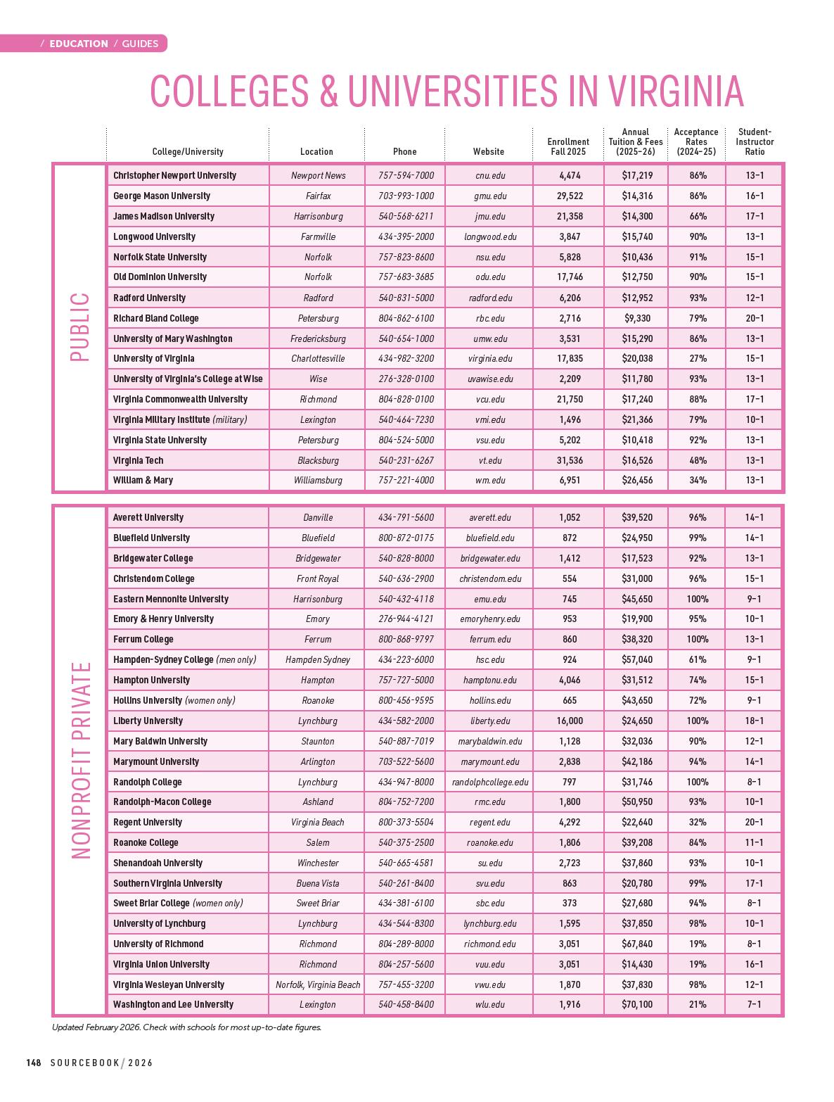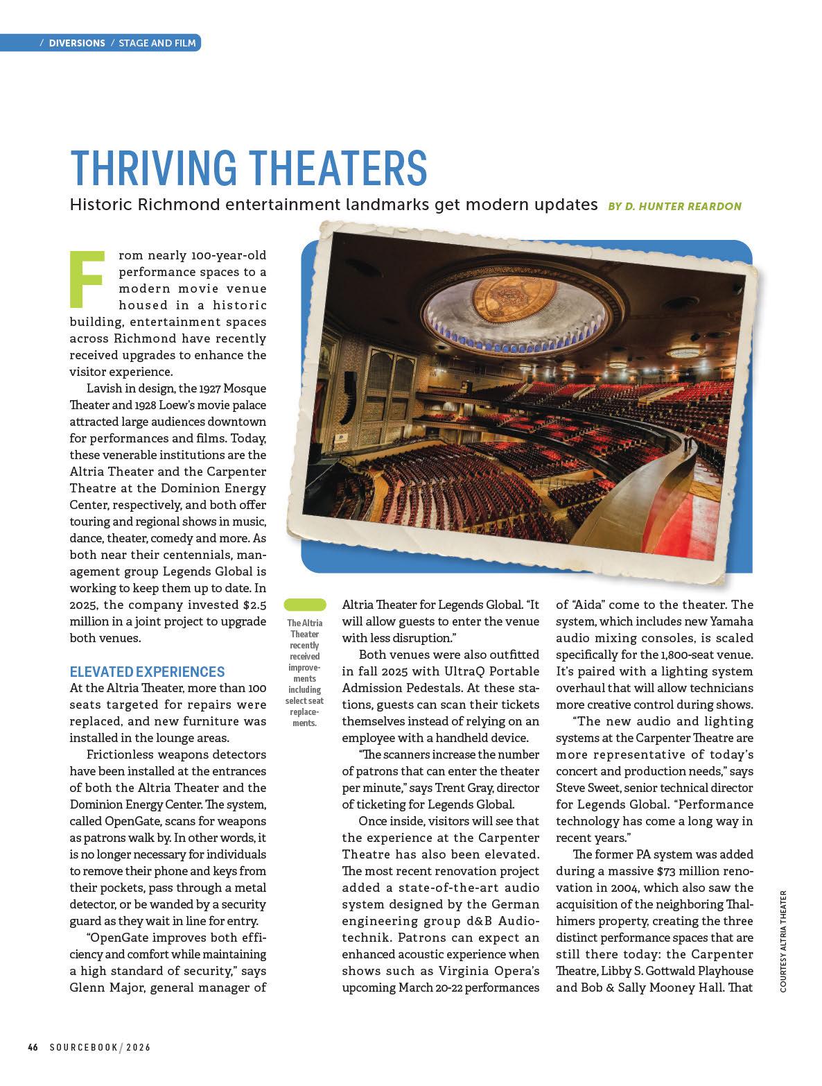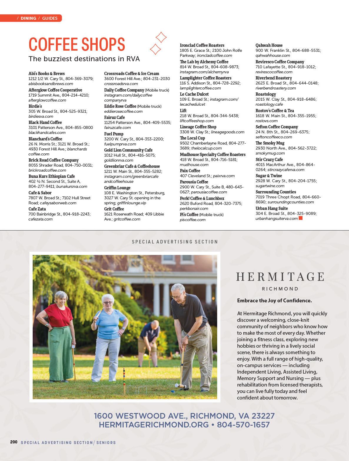 Explore the story of Virginia as told through 126 million books, documents, photographs, maps, works of art, newspapers, recordings, films and o cial records. Exhibitions open to the public; see website for hours and dates of operation. 800 E. Broad St., 804-692-3500; lva.virginia.gov