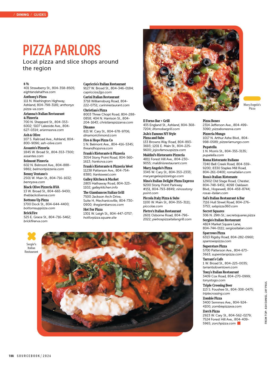 Afghan restaurant o ering brunch, lunch and dinner, plus a seasonal menu. 10 S. Thompson St., 804716-6760; themantuva.com