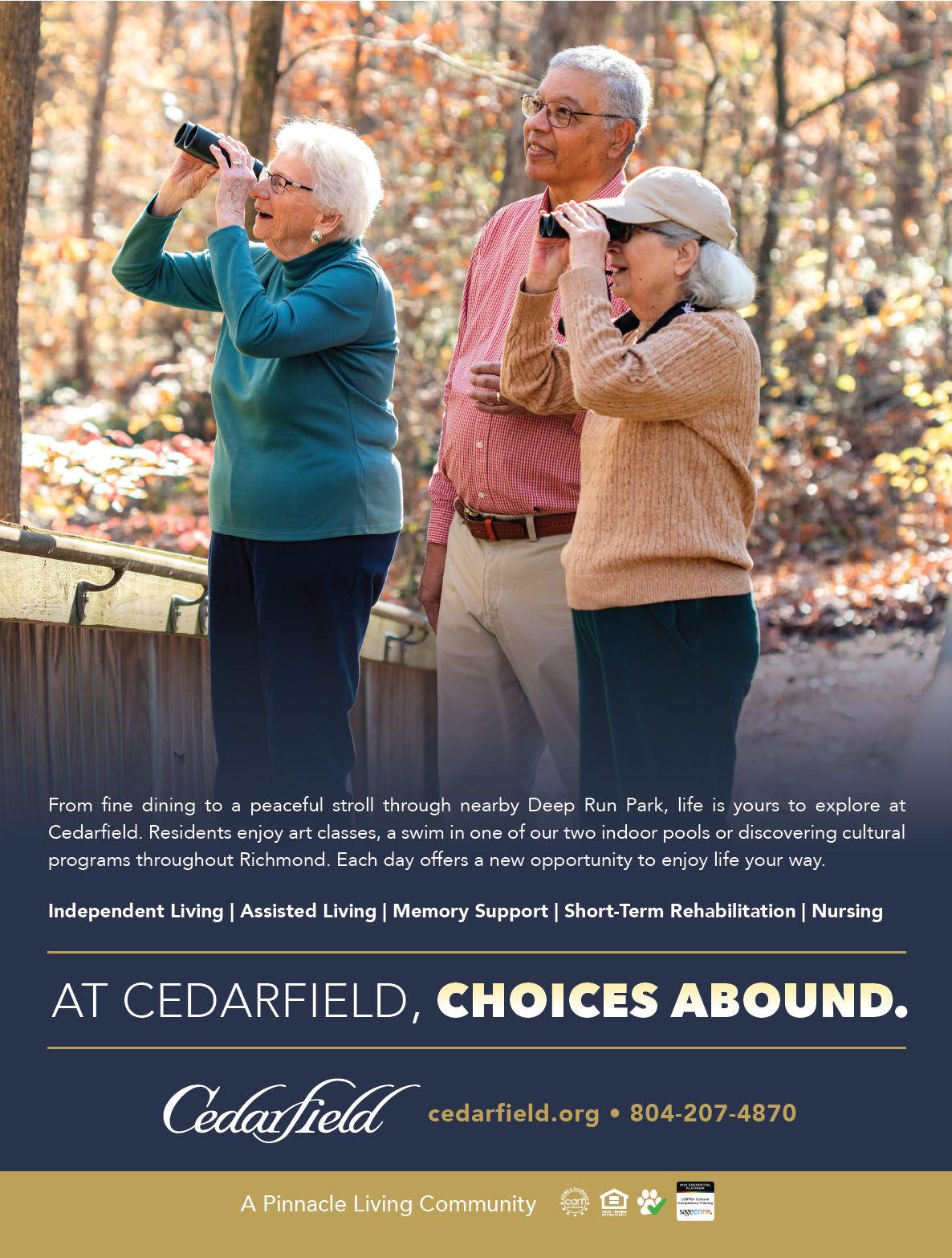 “I take great comfort knowing that, should my needs or circumstances change, high-quality health and memory support services are available to me,” says Ann Williams, a Cedarfield resident. “And in the meantime, I’m living life to the fullest.”