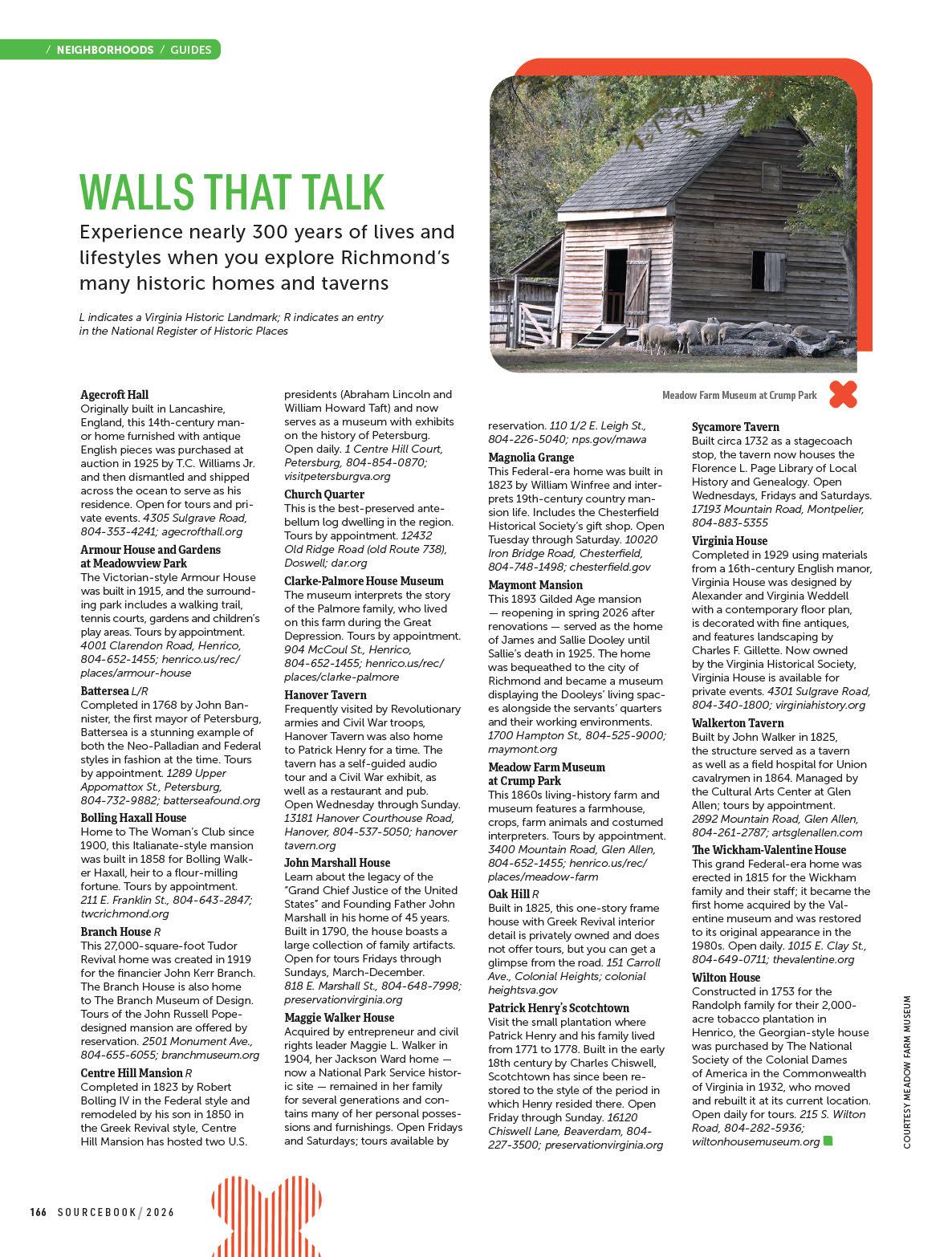 Established in 1898, The Valentine helps visitors experience Richmond’s diverse stories through tours, events, collections and exhibitions. The museum is now home to one of three Richmond Region Tourism Visitor Centers. 10 a.m. to 5 p.m. Tuesday-Sunday. 1015 E. Clay St., 804-649-0711; thevalentine.org
