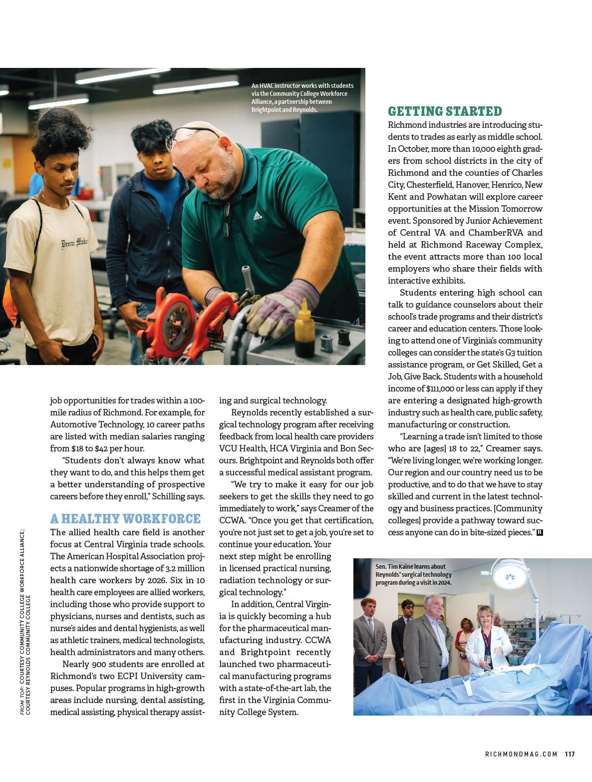 “I’ve spent my career trying to change the narrative about life a er high school,” Beaton says. “We ask students what they’re doing next year, and they automatically say they’re going to college because they think it’s the correct answer. But there are so many other opportunities out there where you can make good money with benefits and without the student loans.”
