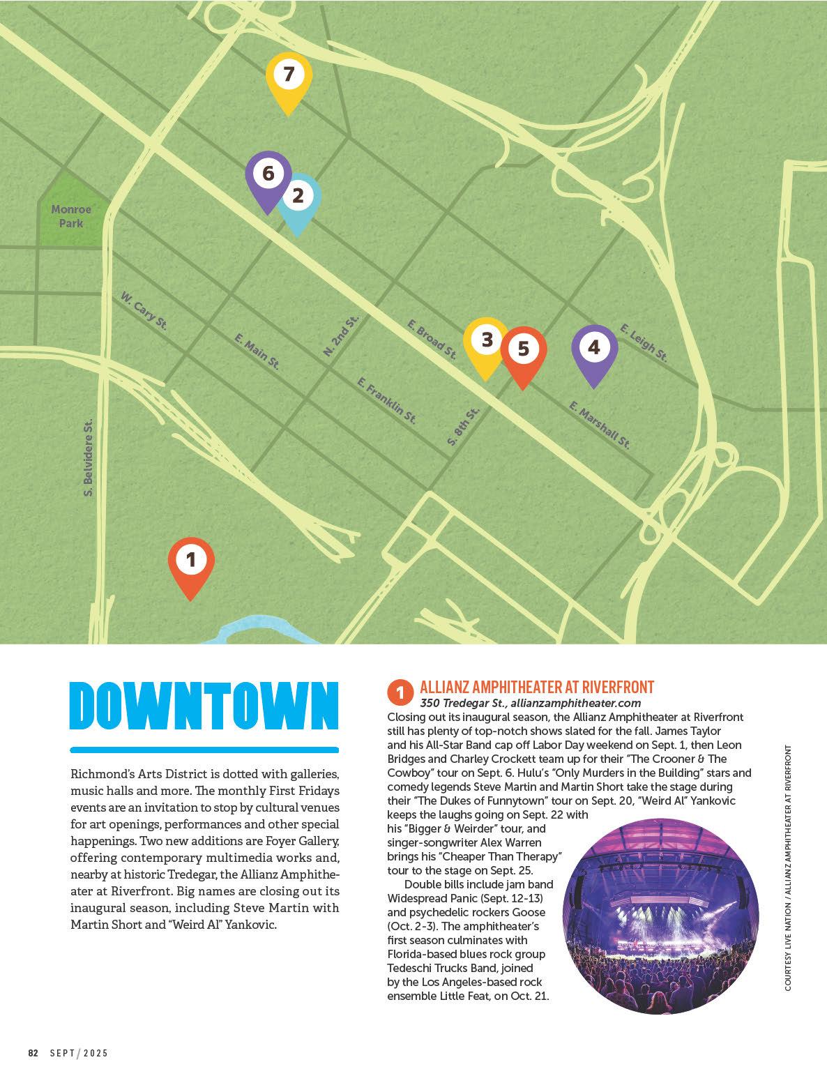 Visual Arts Center of Richmond A longstanding community arts center that o ers more than 1,500 youth and adult art classes in 12 mediums, including drawing, painting, creative writing, clay, photography, digital arts, glass, fiber, metals and jewelry, and more. 1812 W. Main St., 804-353-0094 or visarts.org