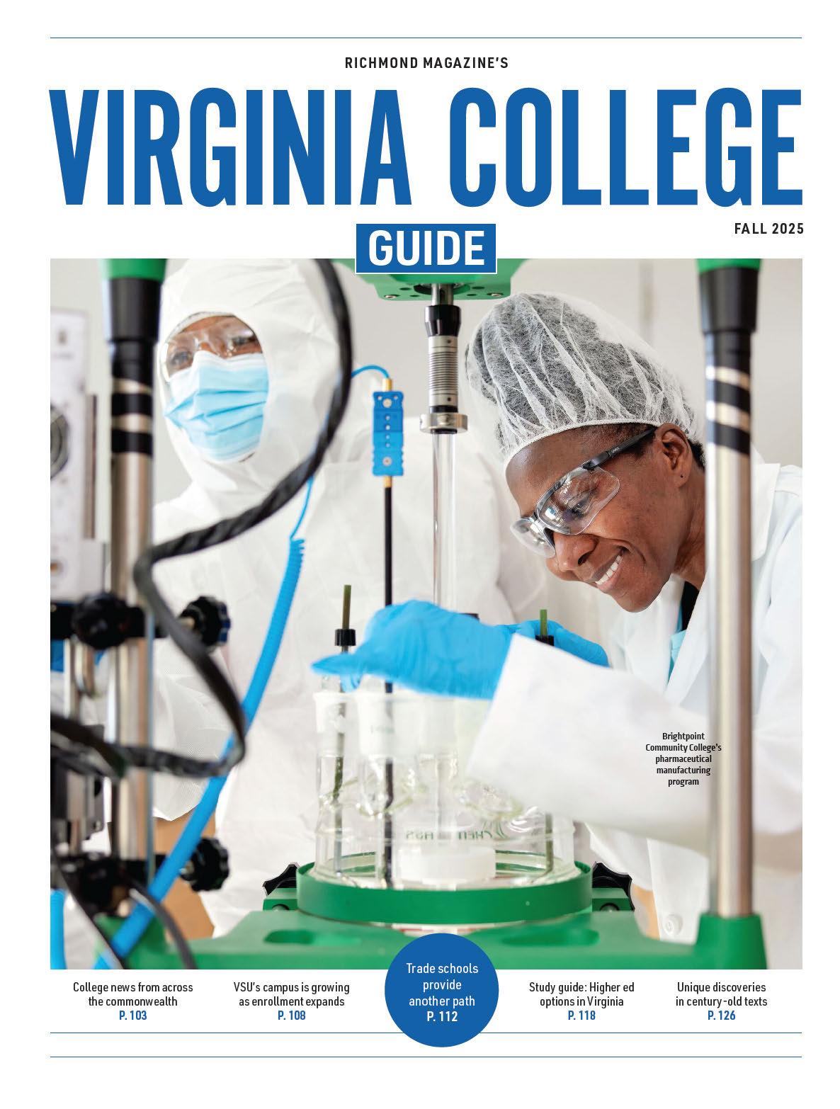 University of Richmond, School of Professional and Continuing Studies Degree program tuition starts at $598 per semester hour. Other course fees vary by program. Evening undergraduate and master’s degrees in education, liberal arts, information systems, human resources management and more, plus professional development and training programs. Also o ers the Osher Lifelong Learning Institute. 490 Westhampton Way, 804-289-8133 or spcs.richmond.edu