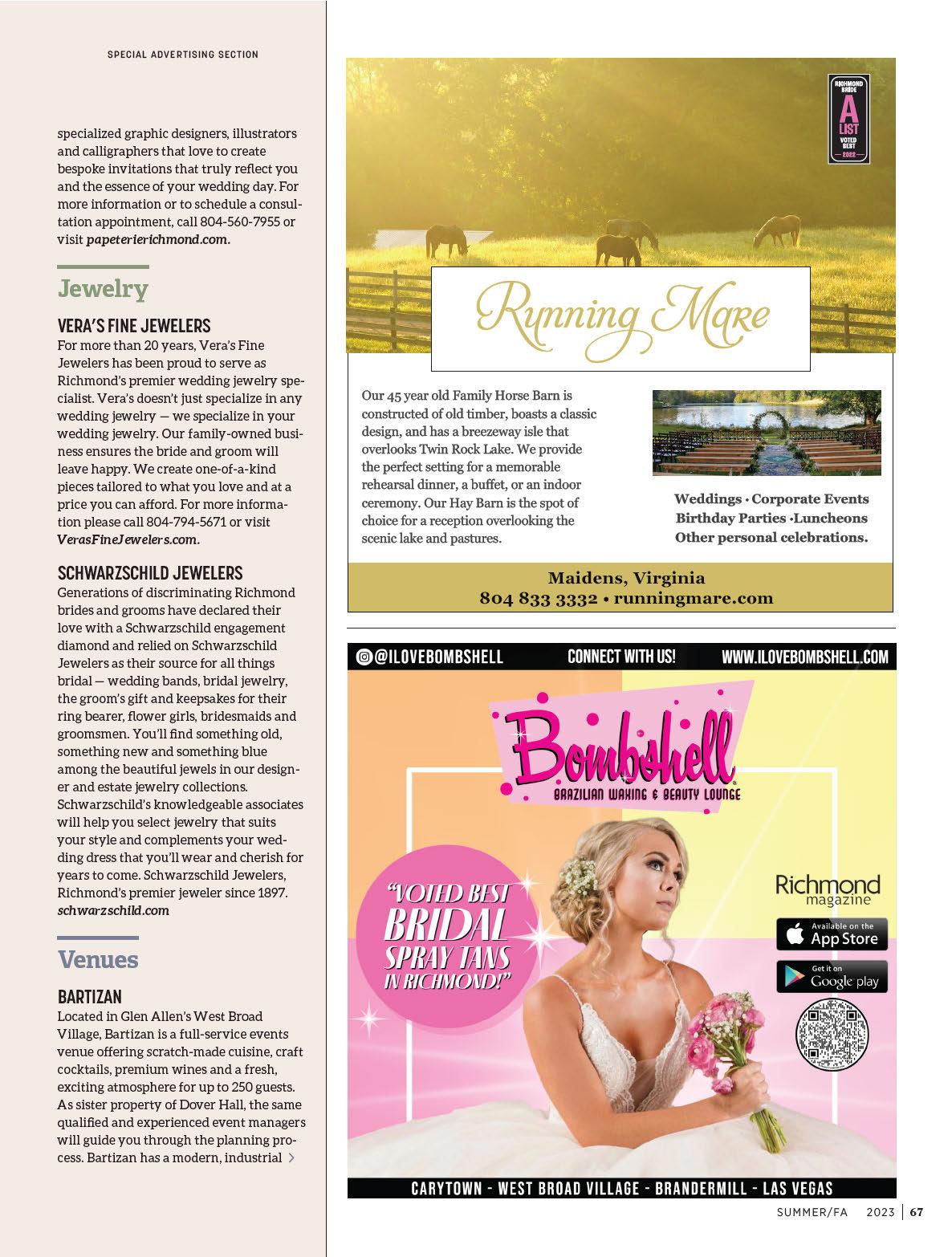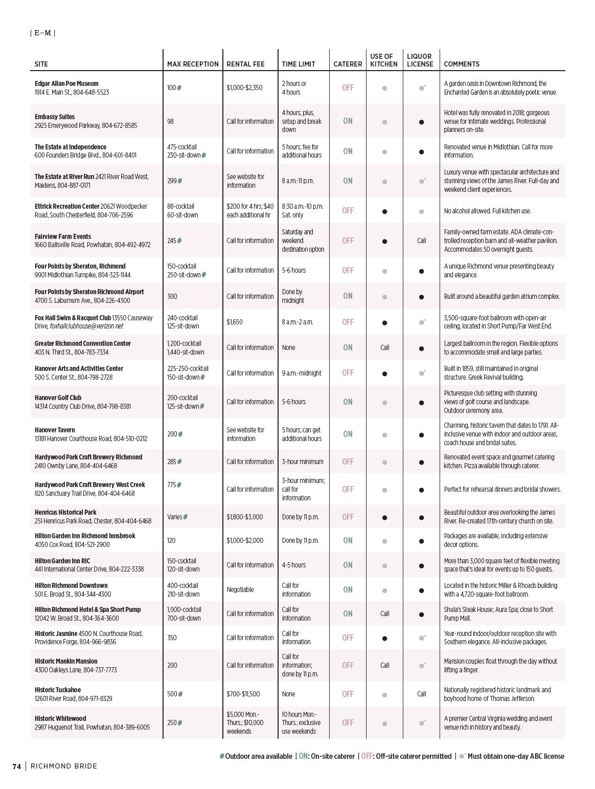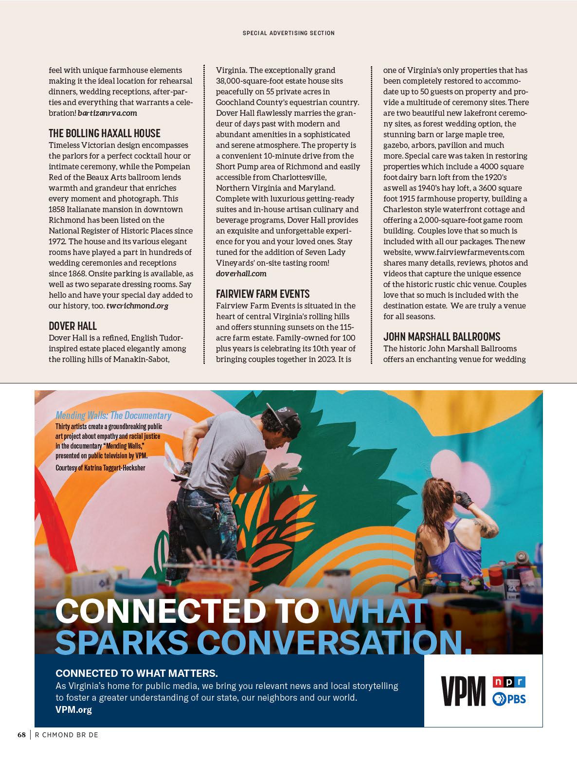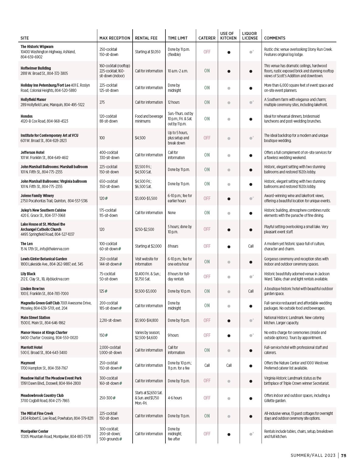 Blanton suffered a stroke in 2019 on the Friday morning of a twowedding week end. He was rushed to JohnstonWillis Hospital, where he spent the next 40 days. “I can only imagine what the couples were thinking,” Debbie says. “If I were a bride, I would be freaking out that the owner has had a stroke.” The Gordons credit their staff and family members with ensuring the weekend events continued as planned. They note that Colon, their soninlaw Brett and their son, Brice, stepped up while Blanton was in the hospital.