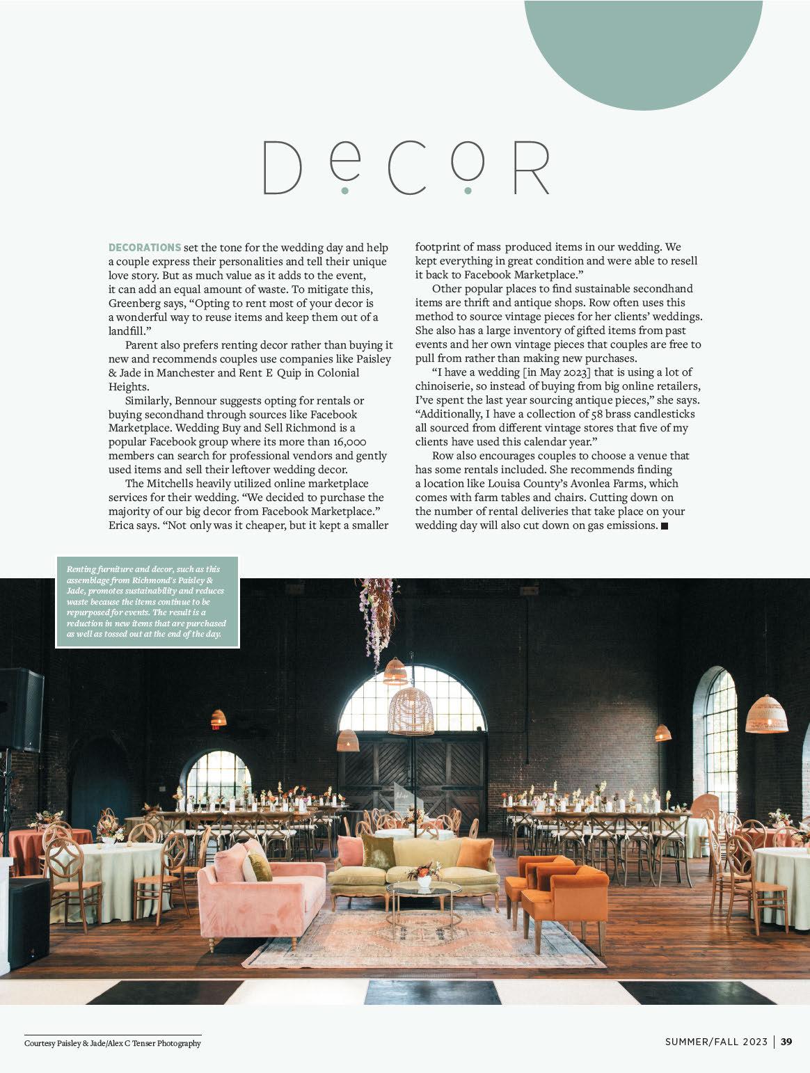 ACCORDING to the United States Environmental Protection Agency, more than 34 billion pounds of textiles are discard ed every year with 66% ending up in landfills. Most of this waste is produced by fast fashion brands, including those in the wedding industry. A way to combat this is to opt for rental or consignment suits and dresses for your big day.