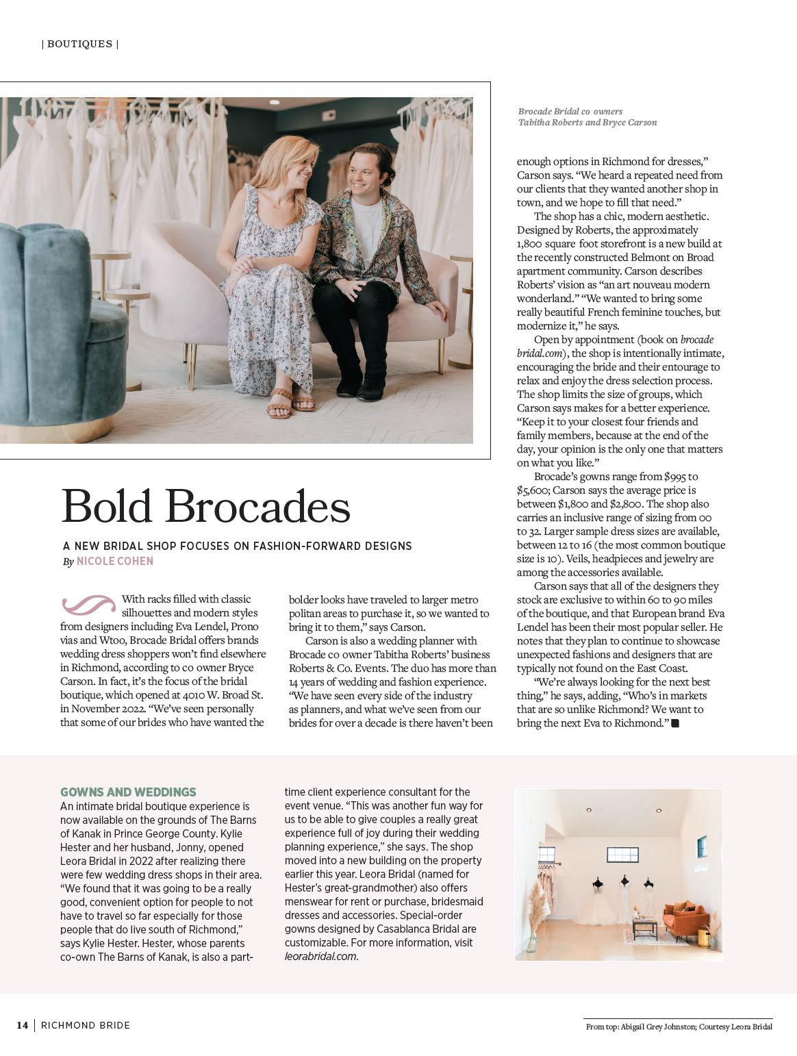 “There’s a lot of stigma around consigned wedding dresses, that they come from divorces, which is not the case. A majority of the dresses we get are from people happily married but [who] don’t want to hang onto their wedding dress or they bought a dress and changed their mind and brought their first dress to us,” she says.
