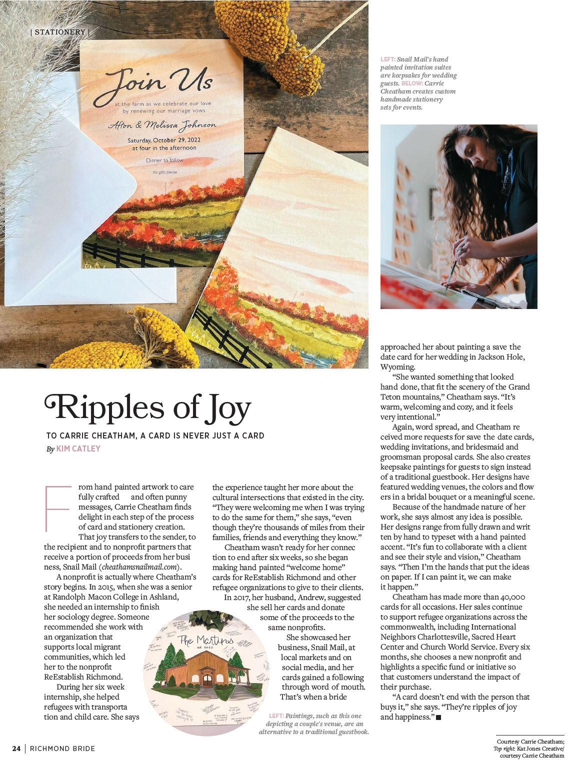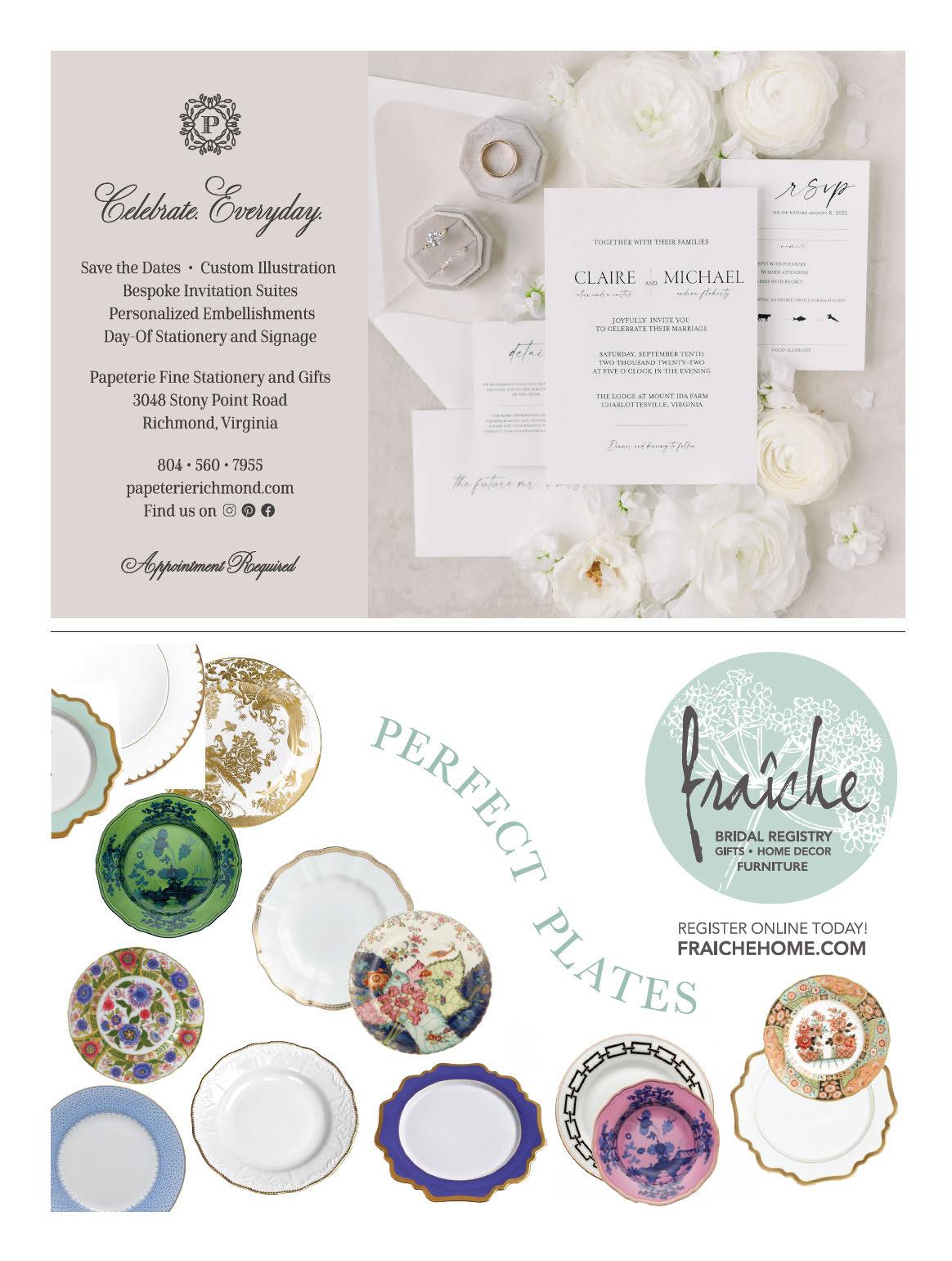 Locally owned since 1979, Merrymaker has been helping Richmond couples express themselves with beautiful wedding invitations for over 40 years. Our Carytown shop is open Monday –Saturday, and we welcome you in to peruse hundreds of samples of invitations, save the dates, programs, menus, napkins and more. Call or email to make an appointment for a design session to get detailed information on pricing and printing options. We look forward to working with you! Merrymaker Fine Paper, 3022 West Cary Street, merrymakerpaper.com and on Instagram.