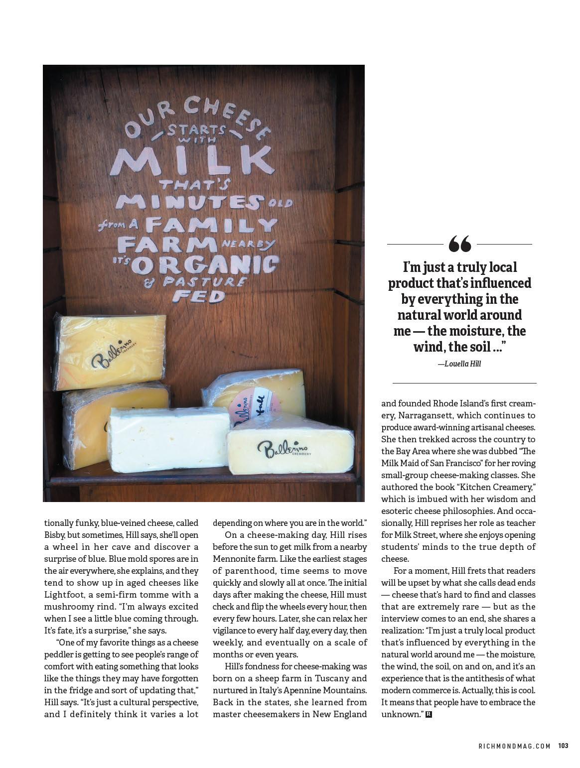 “My cheese stand is a bit more like a vegetable stand,” Hill says. “We don’t walk up to a vegetable stand in April and say, ‘Where [are] the cauliflower?’ We naturally understand that there’s a deep seasonality and that every week it’s going to be di erent.”