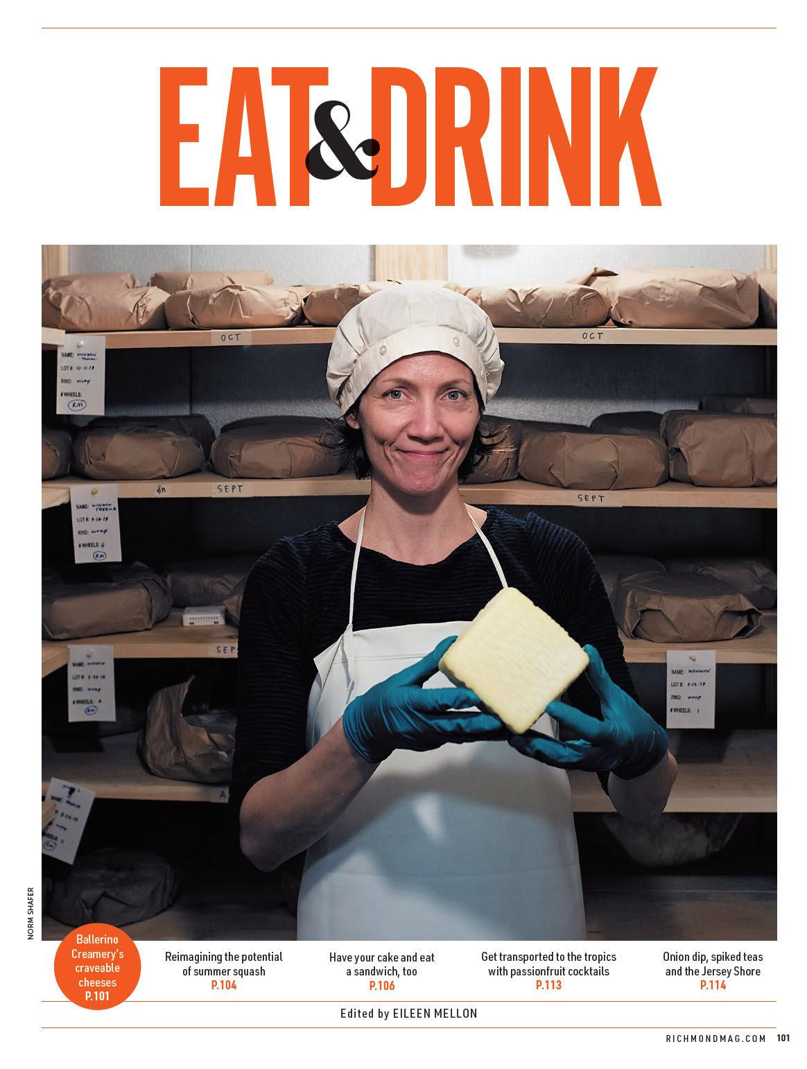 e Staunton-based creamery’s smallbatch, natural-rind cheeses range from fresh pot cheese, a so selection that lands somewhere between co age cheese and the slightly firmer farmer cheese, to caveaged wonders reminiscent of European varieties. e seasonally inspired, highly varied and variable offerings are only available at the Staunton Farmers Market, the Nelson County Farmers Market and, to the delight of many Richmonders, at the Saturday market at Pizza Bones.