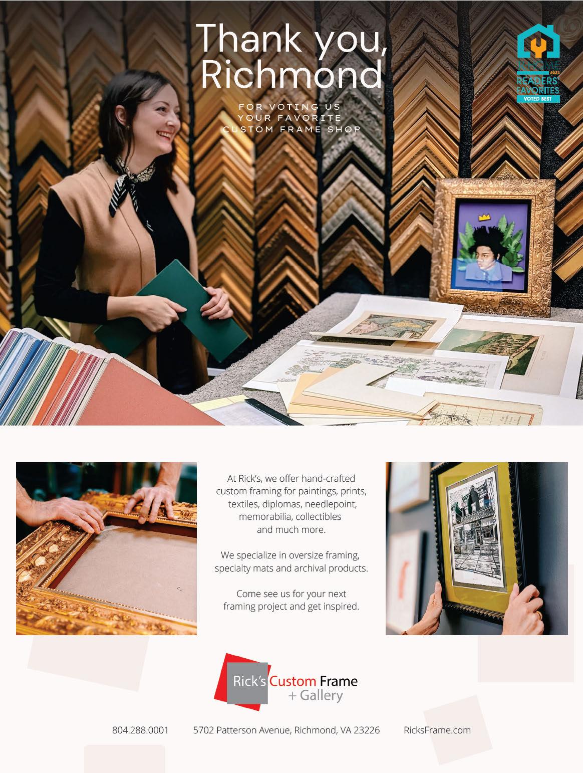 Whether you’re in need of a carpenter, electrician or housekeeping service, or just want to know the best place to shop for a midcentury modern co ee table, you’ll find the results of our annual Readers’ Favorites Survey, on Page 68, a helpful guide. It’s the ultimate word-of-mouth resource for all things home related in RVA.