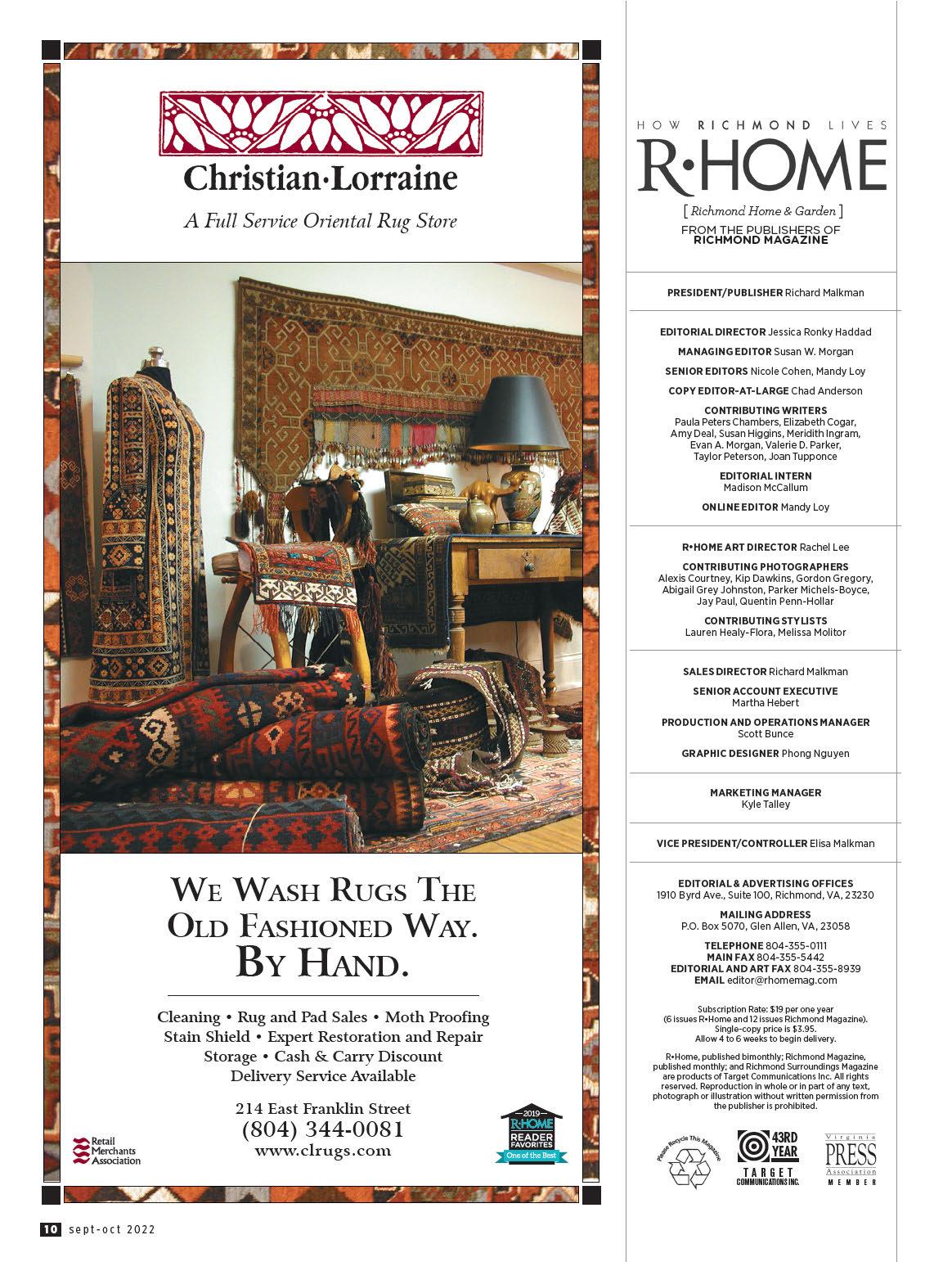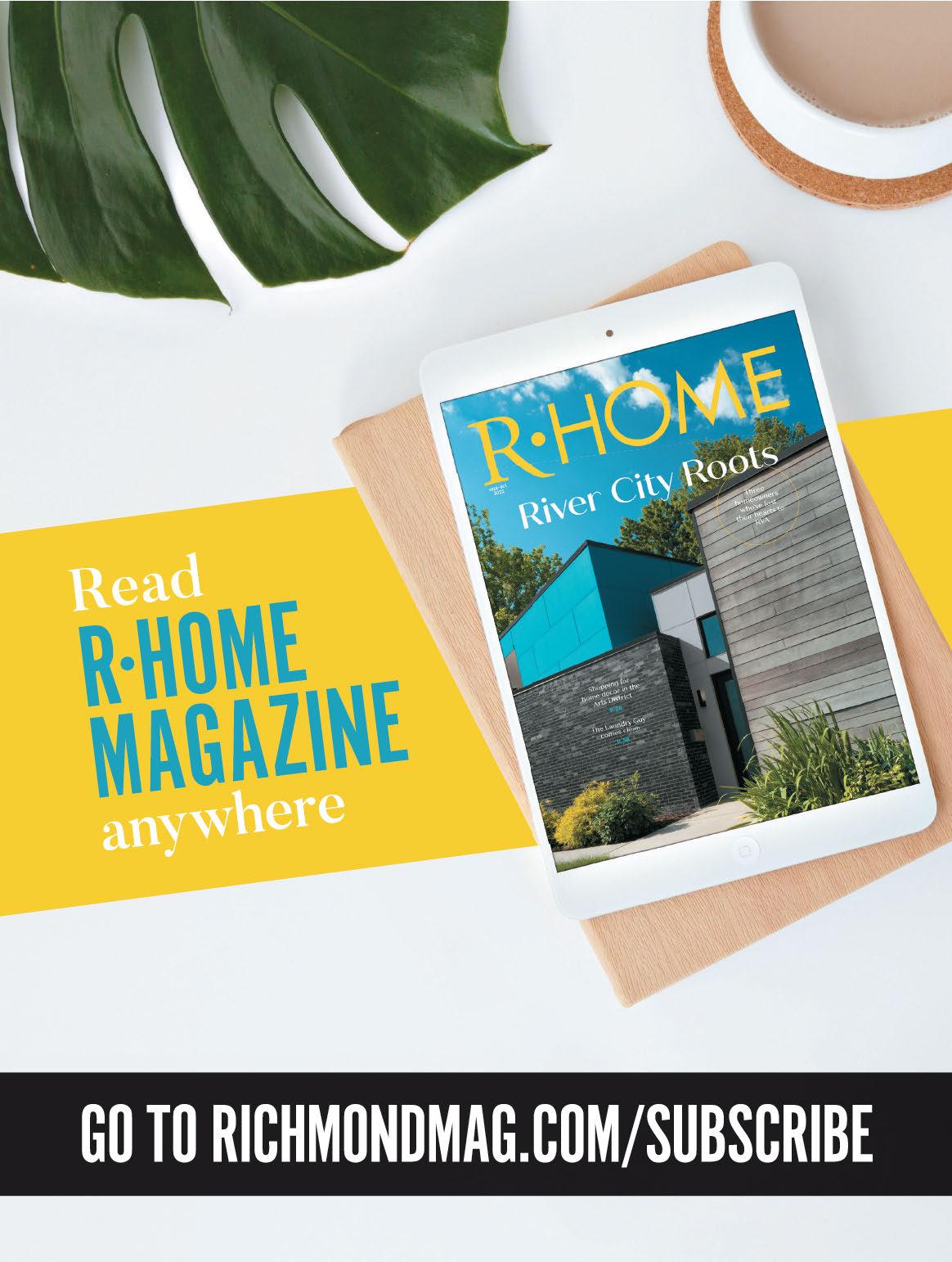 ONLINE, ALL THE TIME Find beautiful photos of local homes, expert design tips and advice, and much more at rhomemag.com.