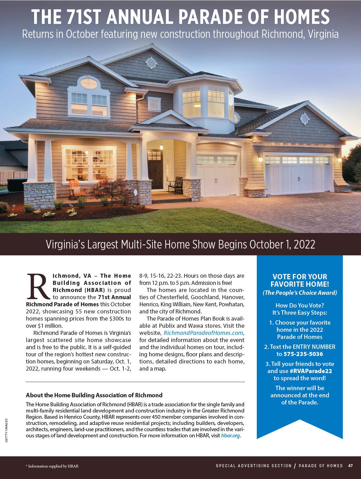 In addition, Taylor Peterson talks with Patric Rich ardson, host of “The The Laundry Guy,” about his upcoming appearance at the Richmond Home Show on Page 58. Susan Higgins visits an indoor garden in Oregon Hill with more than 200 plants on Page 30. And Evan A. Morgan explores some of the chic home furnish ing shops in the Downtown Arts District on Page 28.