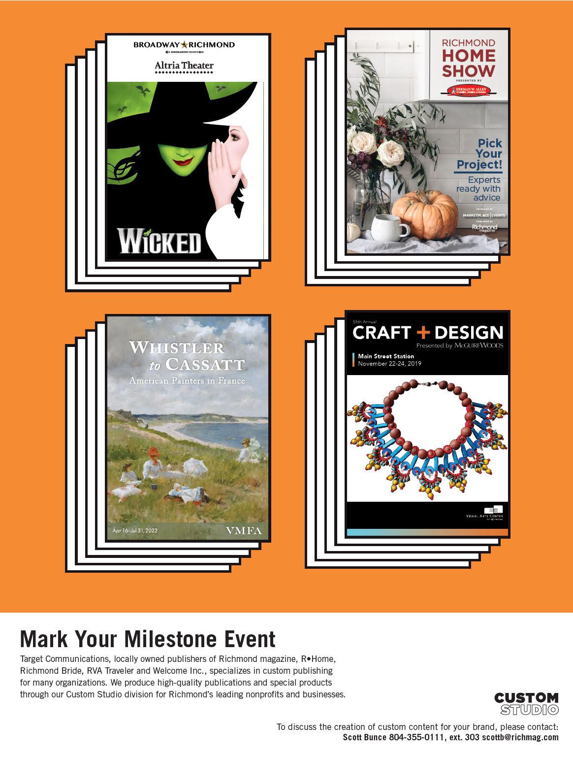 here’s something about Richmond that draws us to the city. I’m not sure if it’s the historic architecture, the wealth of beautiful residential neigh borhoods, the vibrant arts scene, the people or its complex history. For me, who moved here from New York City years ago, it’s all of that and more. They say home is where the heart is, and mine is here in the River City.