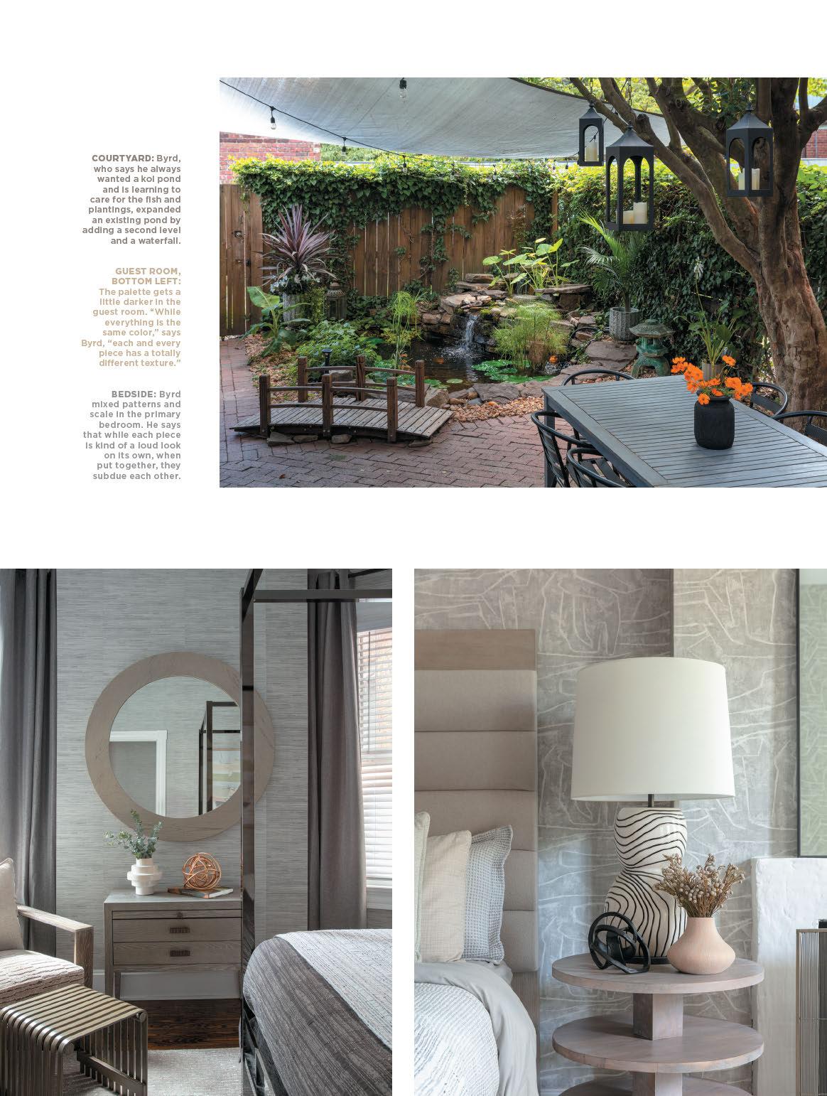 While Byrd says he designs cli ents’ homes with sure and speedy ease, designing his own residence is typically another story. “I tend to overthink things,” he says. In this case, however, he didn’t give himself the luxury of time. He was eager to get back to living, calling on “every trick in the book” to complete the renova tion and fully furnish his home during a continuing supply chain crisis. He moved in December 2021.