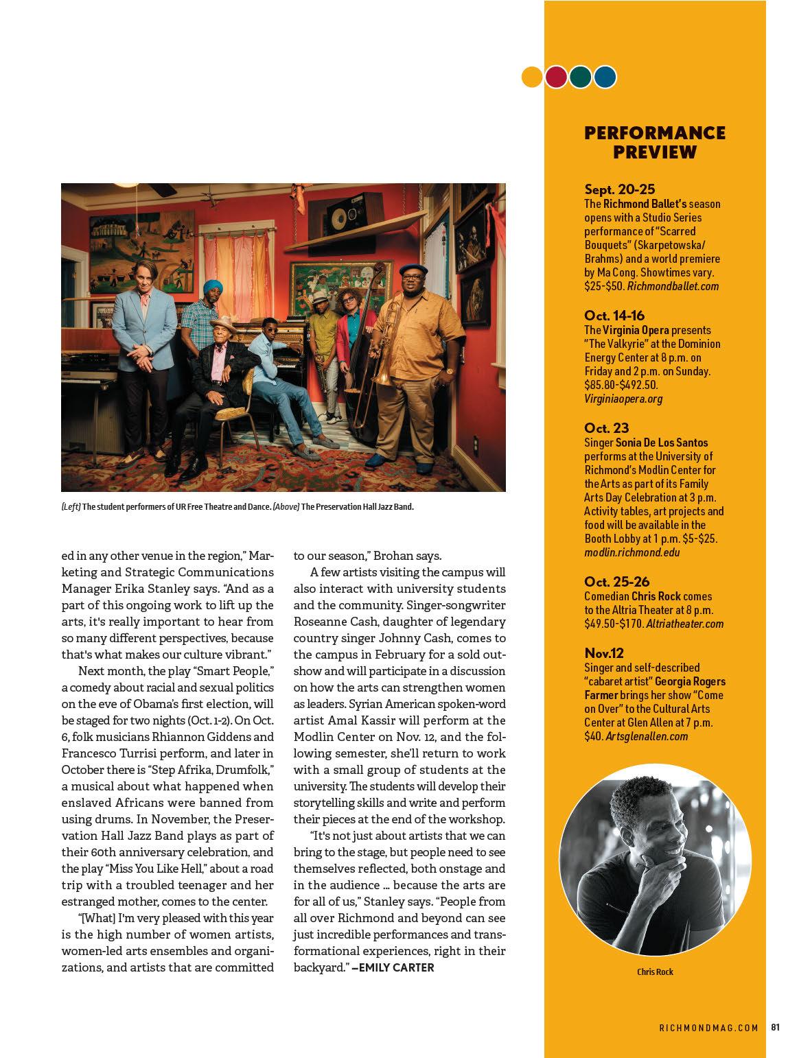 After two years of pandemic uncertainty, the fall arts season is back in full force. We present some of the hottest tickets in town and look at what’s new, from a record label highlighting homegrown talent to the lowdown on festival season, the Modlin Center’s slate of events, art happenings and more. By Craig Belcher, Emily Carter and Harry Kollatz Jr.