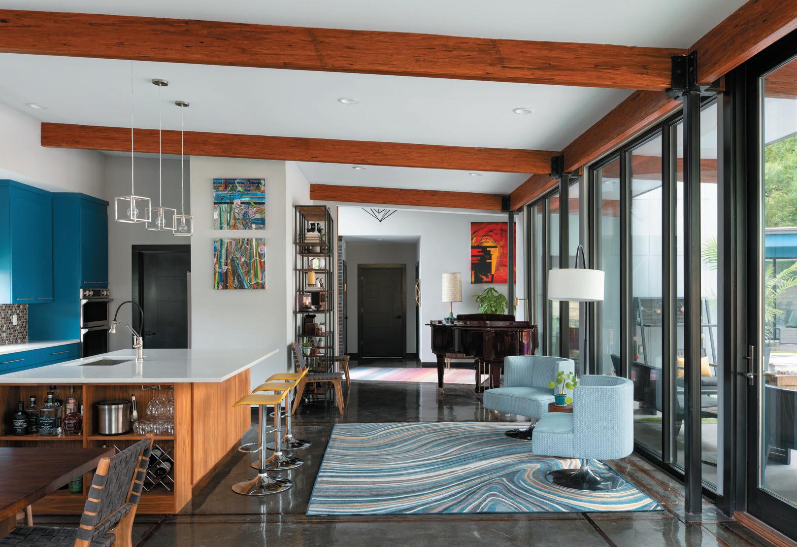 The result of input from all involved is an L-shaped, 2,679-square-foot home that includes everything Waugh and Wortham hoped for. The floor is solid concrete, but the furnishings are soft, colorful and fun. Sunlight pours into the kitchen and living areas, along with