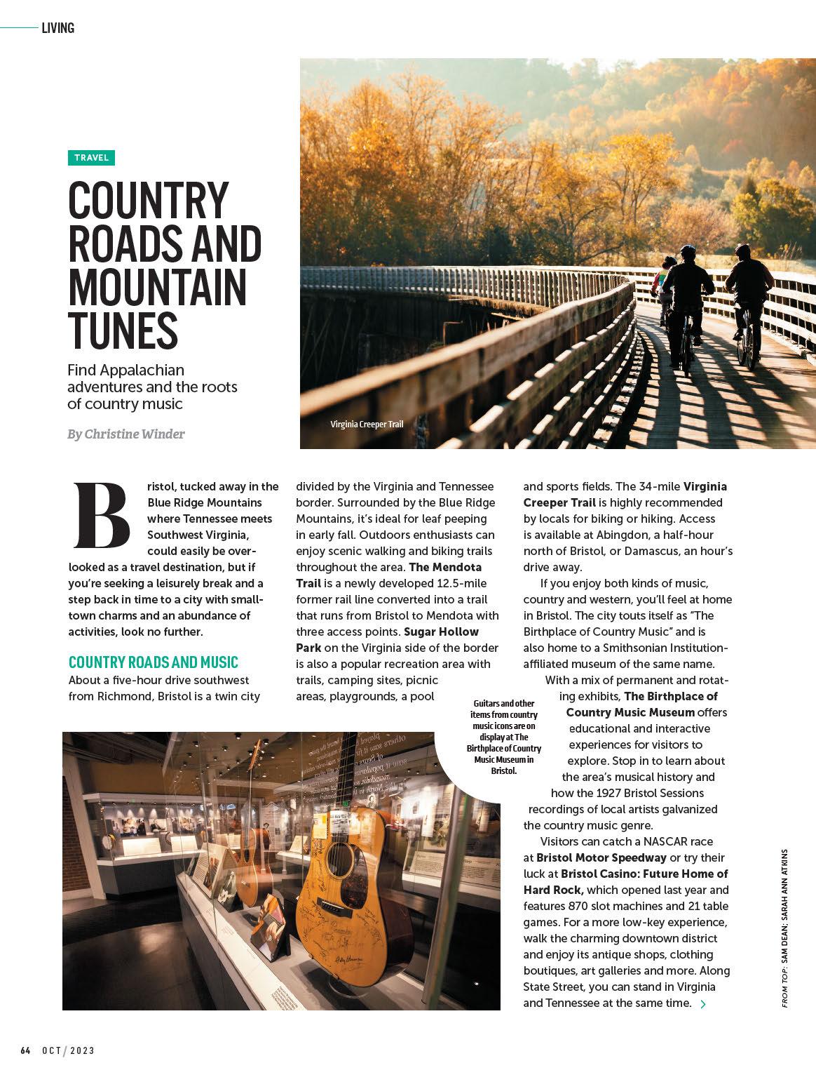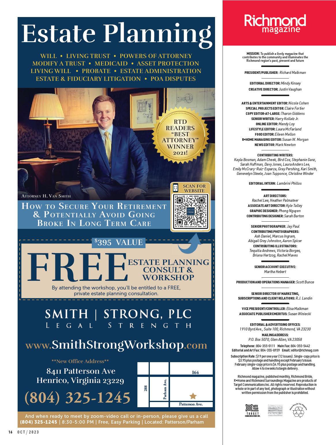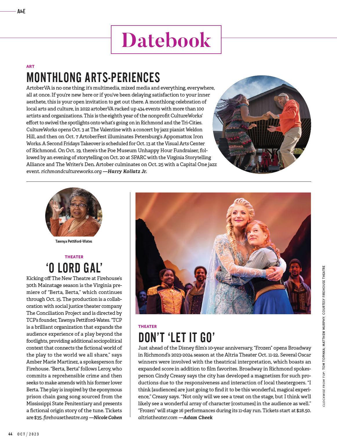 moved here five years ago from Knoxville, Tennessee. “We were looking for a retirement place and we went around like you’d look at colleges with your kid,” she recalls. She’d visited Richmond 40 years prior and was unimpressed, but she discovered a revitalization in the city that matched their expectations in terms of culture, the James River, the food and architecture.