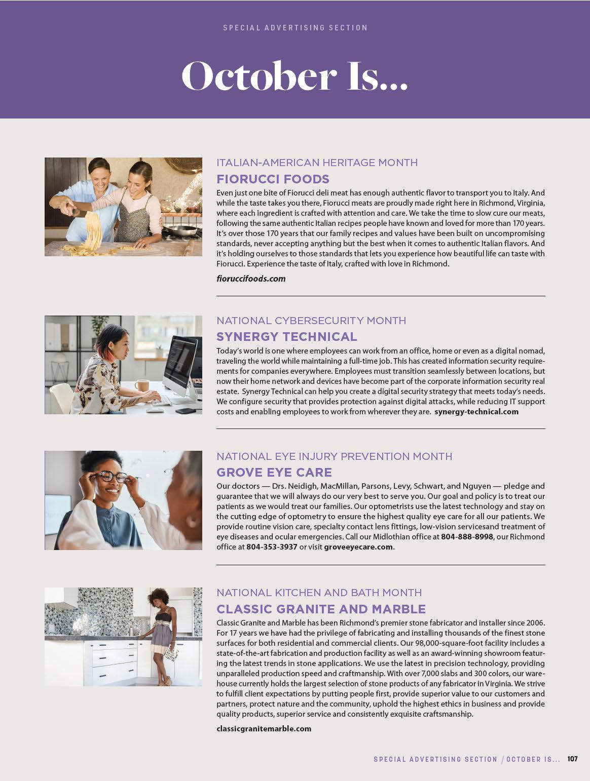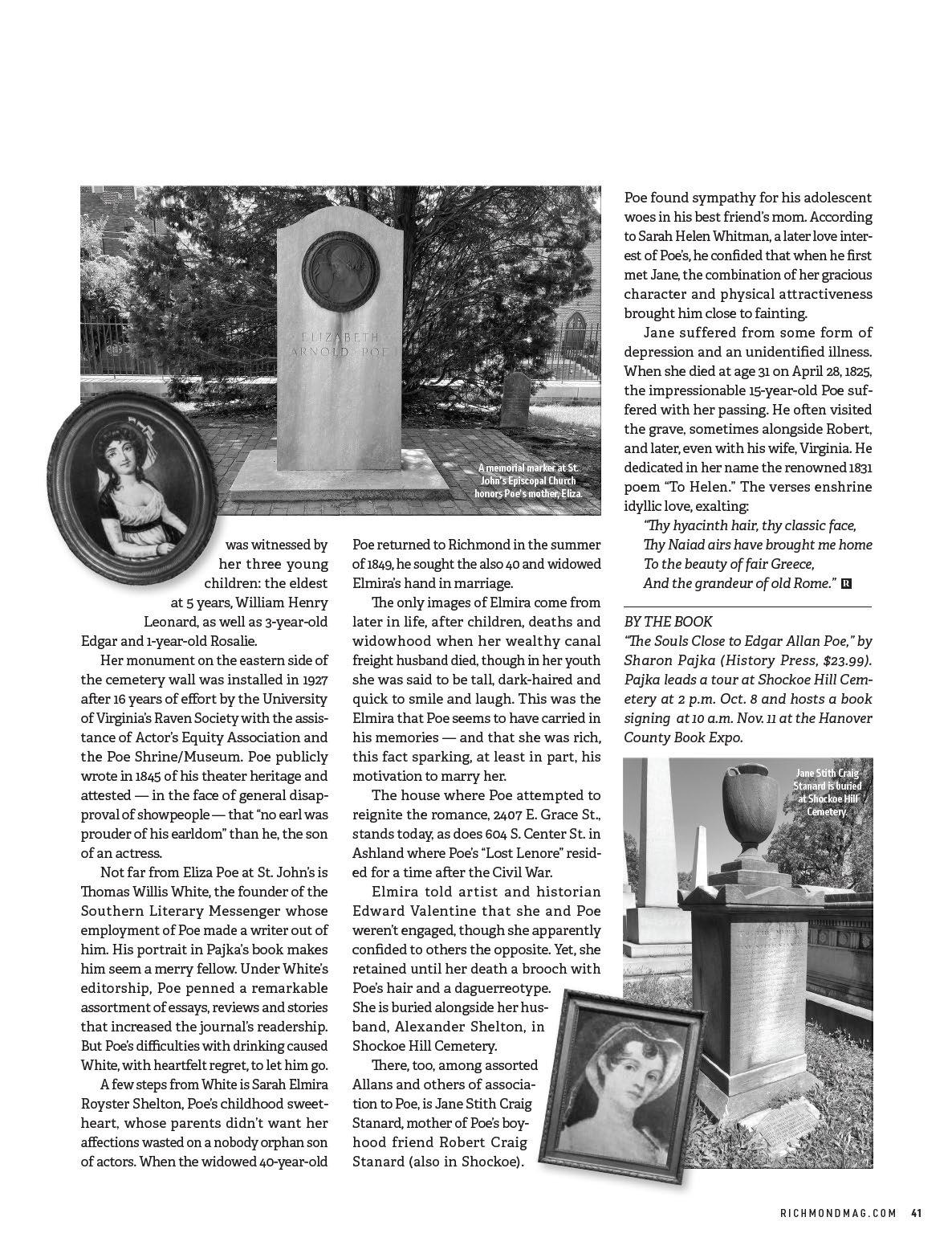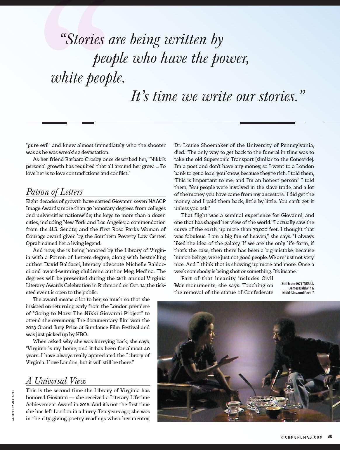 moved here five years ago from Knoxville, Tennessee. “We were looking for a retirement place and we went around like you’d look at colleges with your kid,” she recalls. She’d visited Richmond 40 years prior and was unimpressed, but she discovered a revitalization in the city that matched their expectations in terms of culture, the James River, the food and architecture.