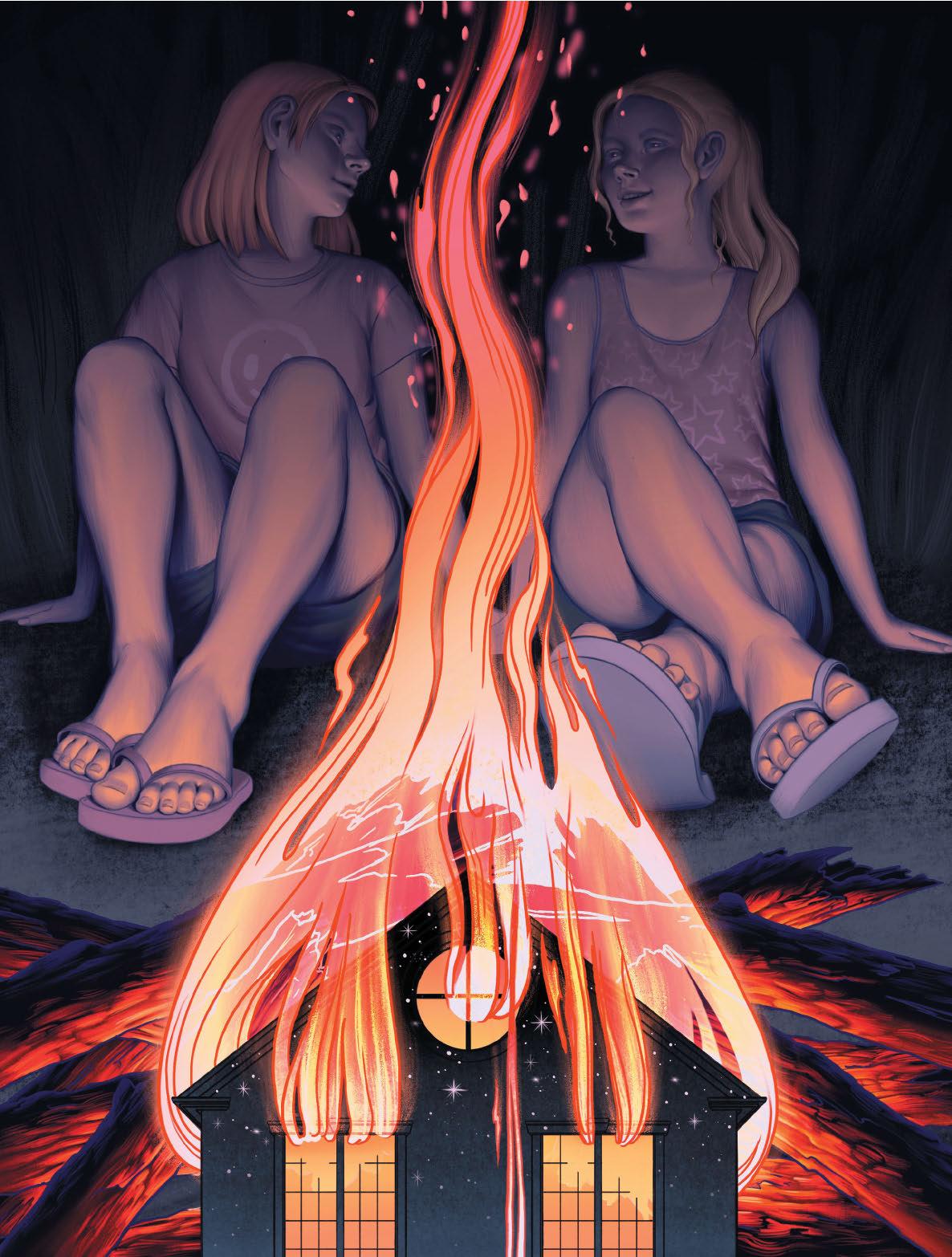 I was fourteen, and the heat was slipping away from the bonfire that the camp counselors had built up earlier in the evening. Around the pit, deep seats were carved into the hillside like stairsteps, the dirt held in by wood thick as railroad ties. Smoke curled into the dark, and beyond it, the lake was a wide, inky mass edged by trees. We couldn’t really see much of anything else — for the first time all week, the moon was gone.