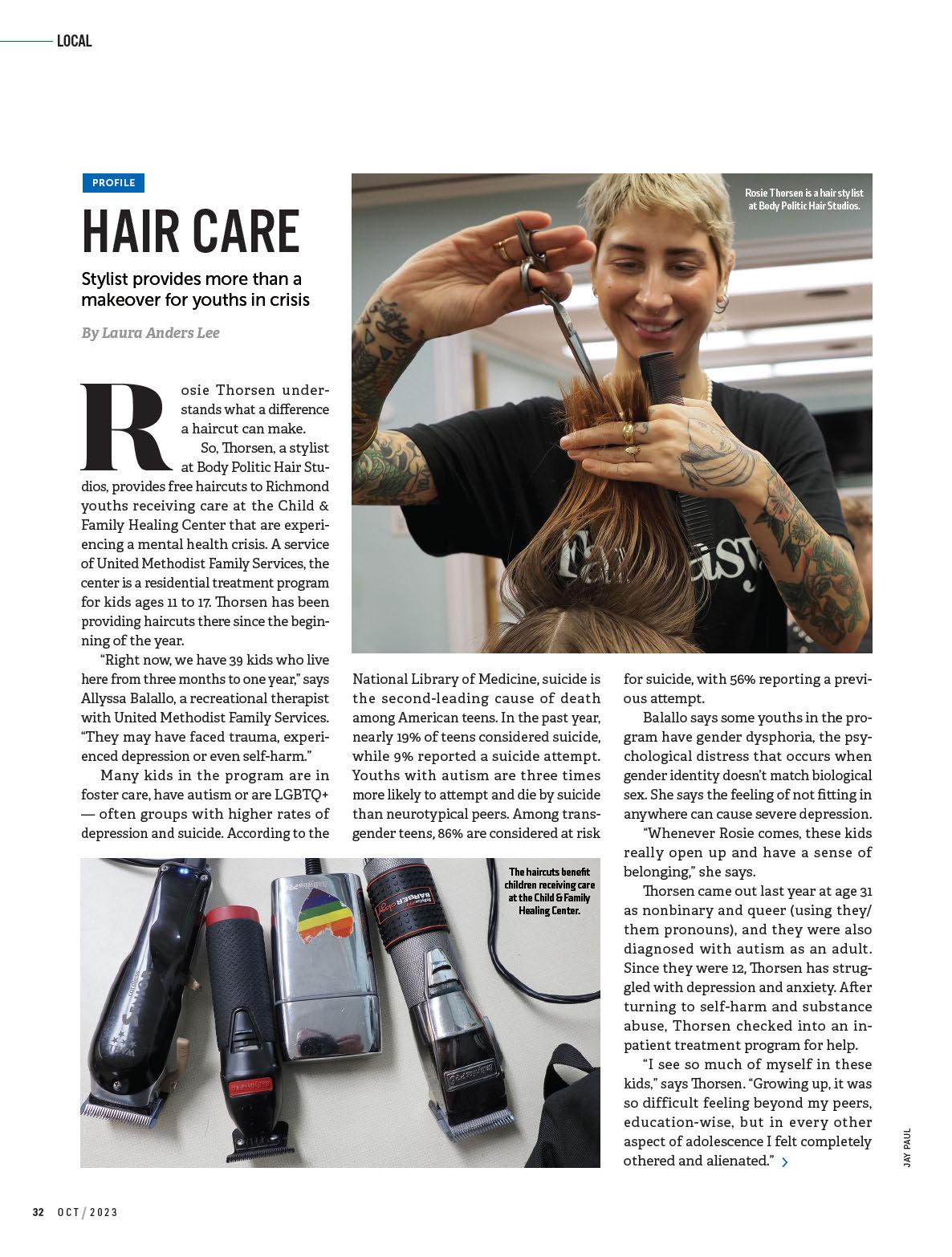 Since spring 2022, Collins’ helper has o en been a fellow Richmonder, Barb Overstreet. The death of O verstreet’s husband in 2021 le a void in her life. Several months later, she became a Nabor, wanting to do something meaningful with her time but, at 76, not wanting a more structured job.
