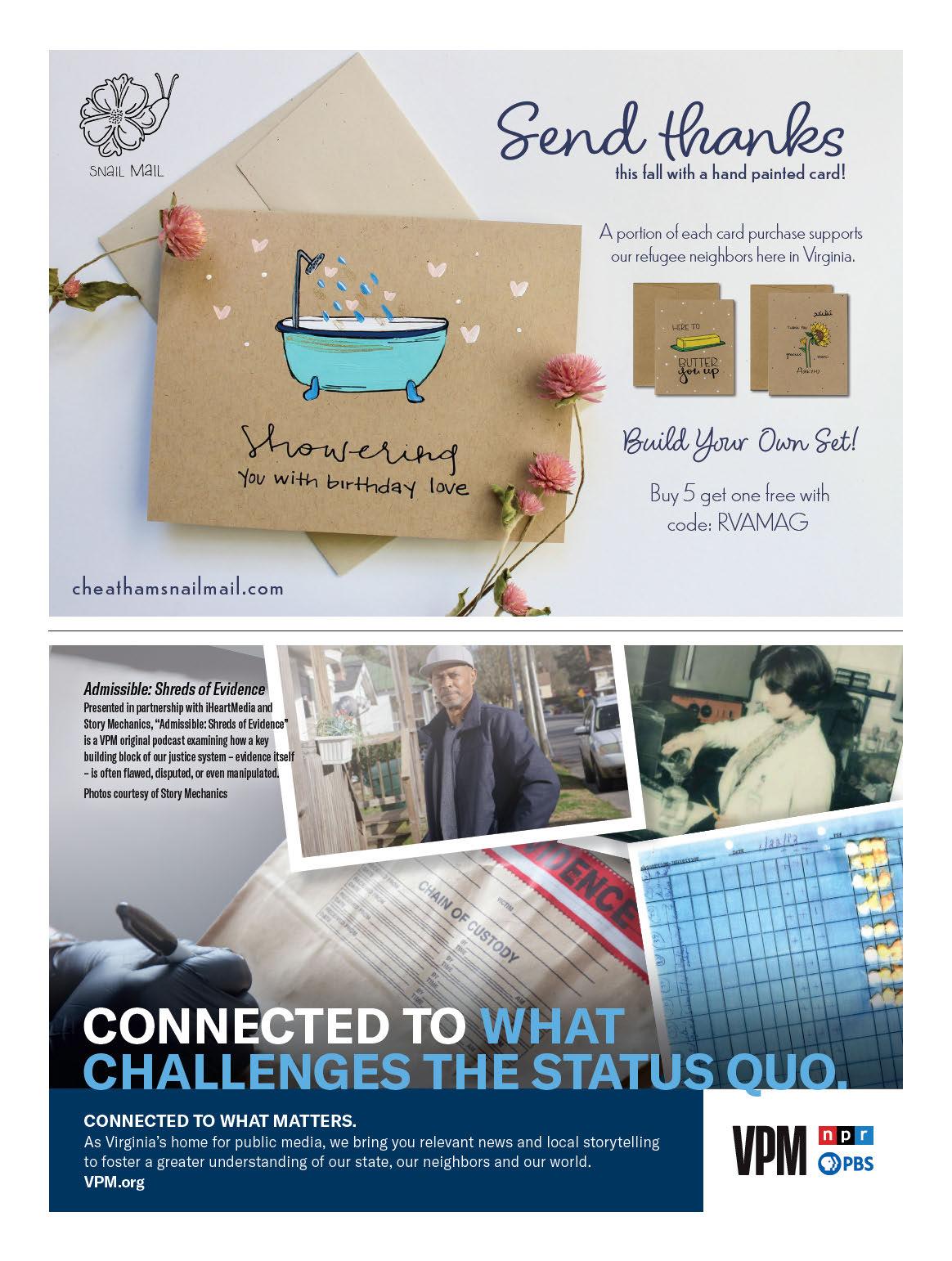 At 2919 North Ave., a newly painted black building is emblazoned with the words “Matchbox Mutual Aid” in block le ers. Above the door is the phrase “Food is a right, not a privilege.” For the two teams behind this new venture, RVA Community Fridges and Food Not Bombs, the site will be the pillar of the work they do to feed Richmonders in need.