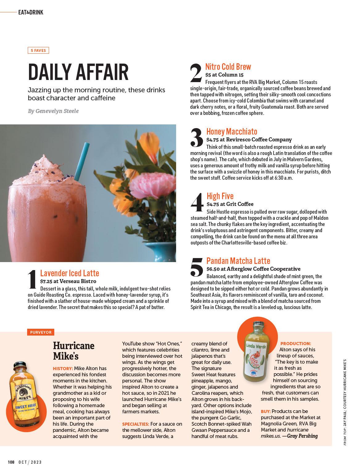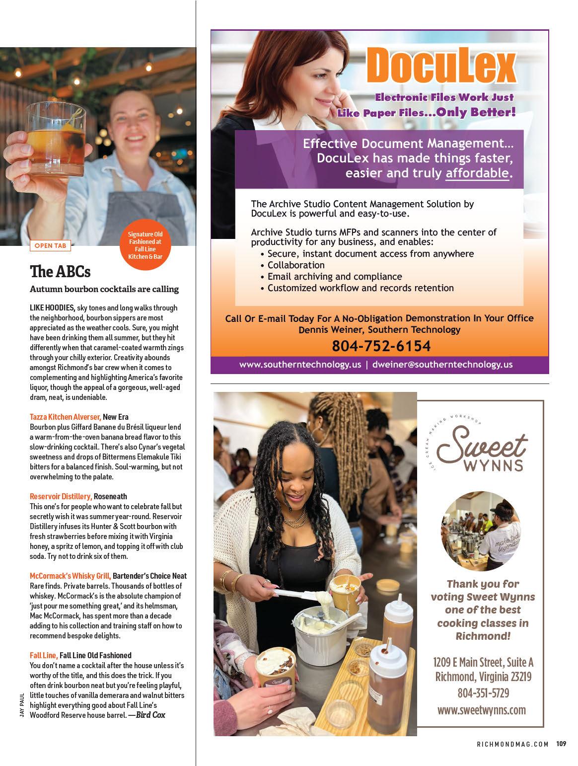 “I don’t necessarily believe in things such as cursed buildings and whether or not they can hinder a concept from taking o ,” says Angela Petruzzelli, owner of Sprezza. “ is is especially true in a city like Richmond, where real estate is limited. Restaurants are volatile businesses; they work and don’t for millions of di erent reasons.”