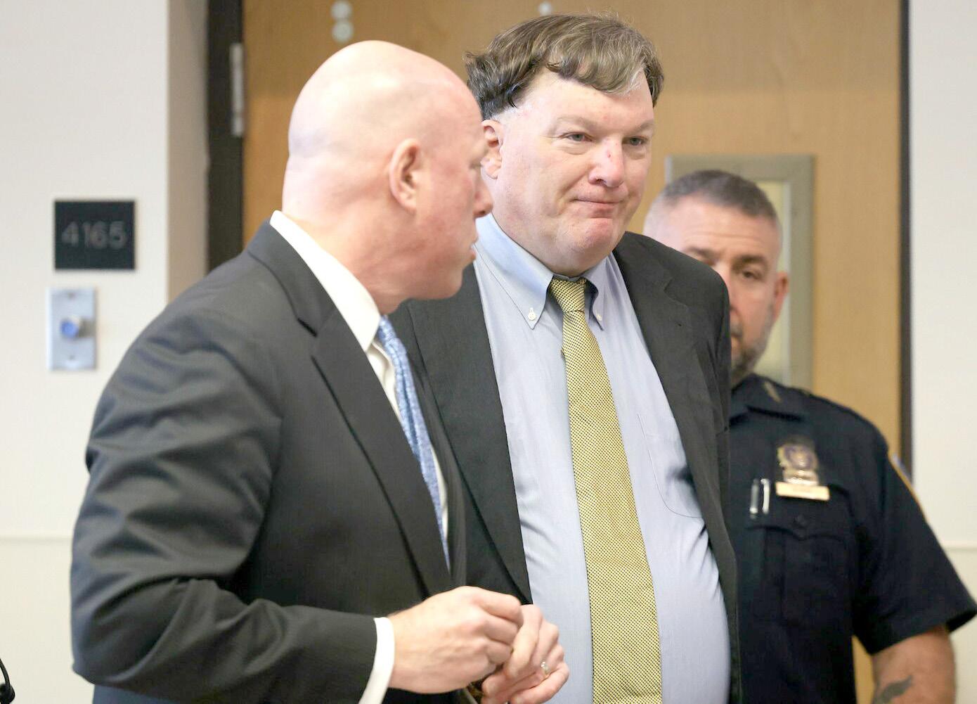 Alleged Gilgo killer Rex Heuermann appears in front of Judge Tim Mazzei alongside his attorney Michael J. Brown at Suffolk County Court in Riverhead on Tuesday, Jan. 13, 2026.