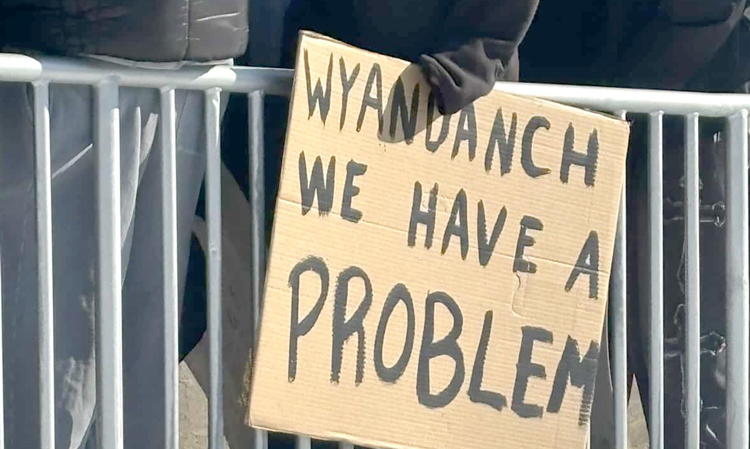Sign carried at recent student walkout at Wyandanch High School expresses student concerns.