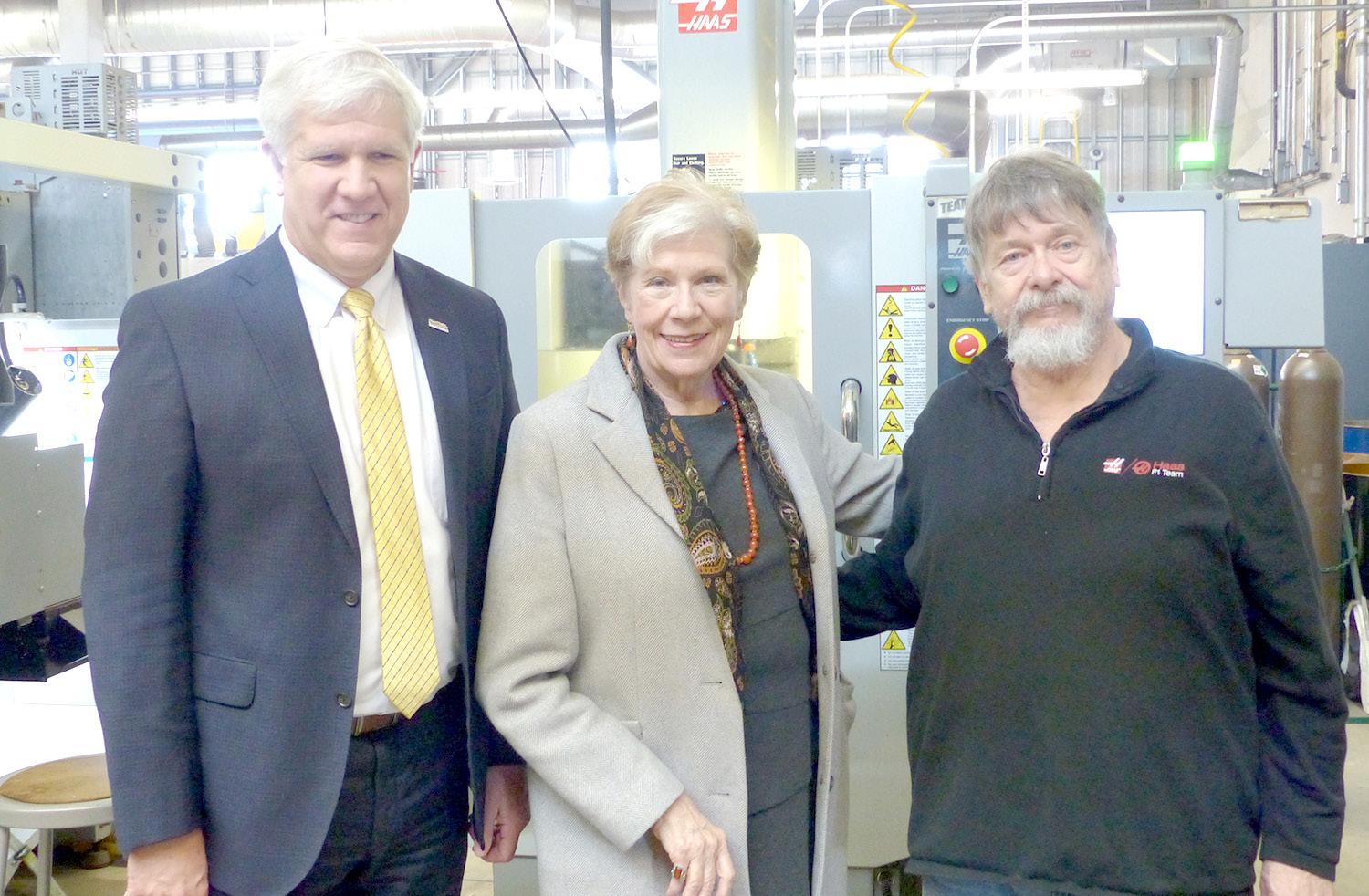 Edward T. Bonahue, President, Suffolk County Community College, Labor Commissionre Roberta Reardon and Mike Fabrizio, director of SCC College’s CNC program.