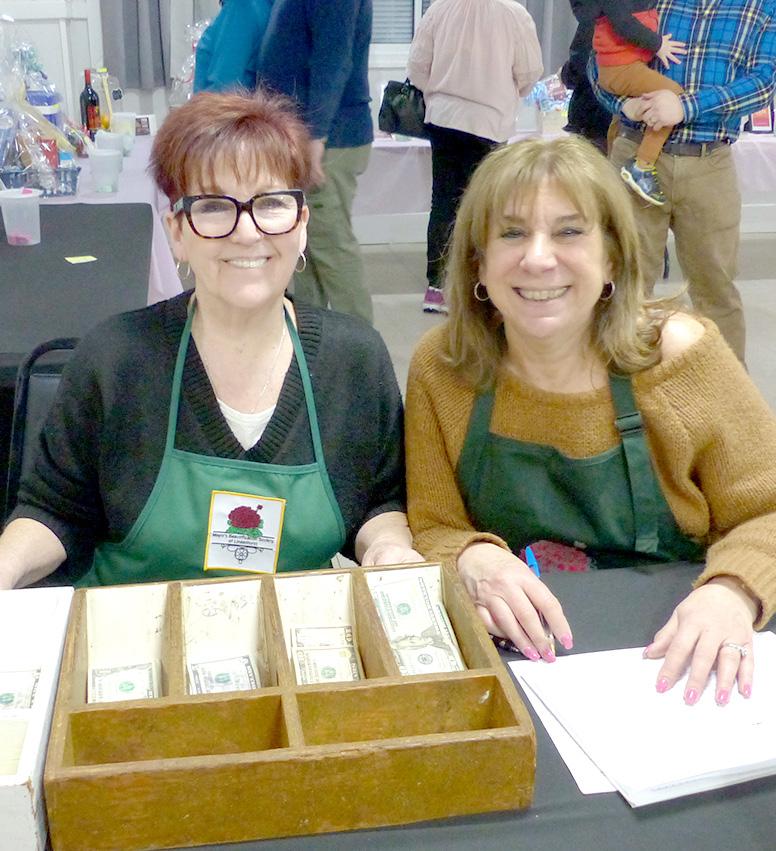 Sara Fiorenzo, left and Donna Fazio, right, greet those attending the Lindenhurst Beautification Society pancake breakfast Feb. 22.