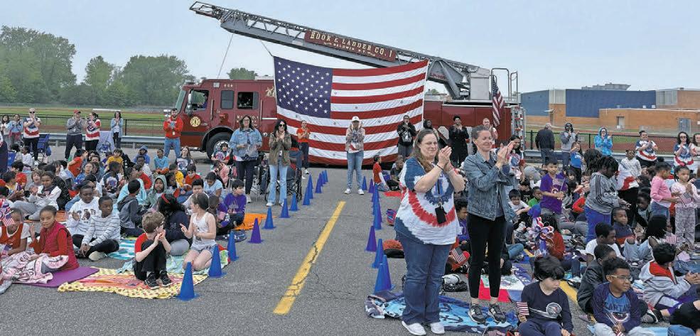 The event, held on the school’s back field, brought together students, faculty and local families dressed in red, white and blue. The celebration featured musical performances and a large American flag hoisted by members of the Baldwin Fire Department.