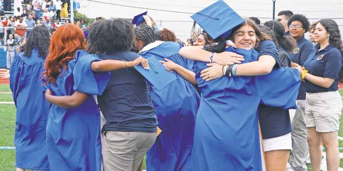 Baldwin High School graduates lift their caps in celebration during commencement on June 27 at the school’s football field. Story, additional photos, Page 10.