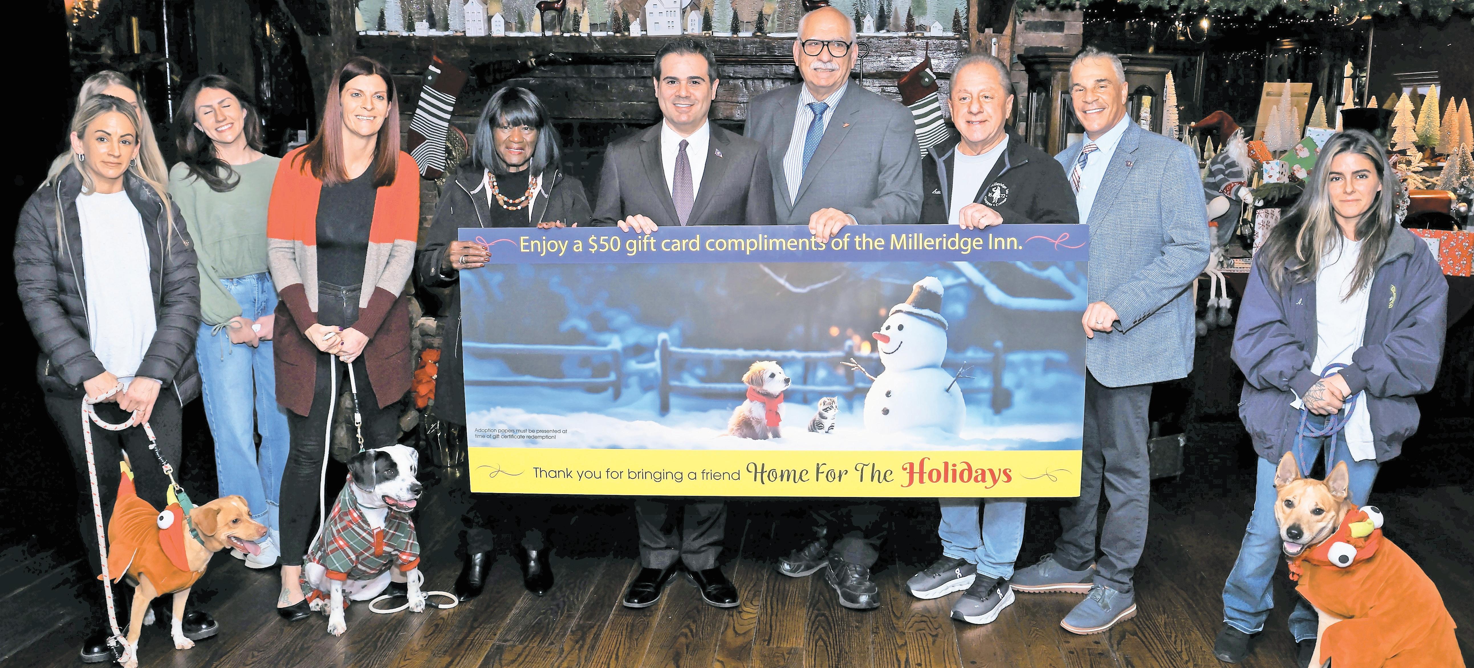 “We are thankful to the Milleridge Inn for supporting this adoption initiative,” Town Supervisor John Ferretti said at a festive launch event on Nov. 20. “Few things are more uplifting than the joy of adopting a pet, and I encourage families to take advantage of this great opportunity — and then celebrate the season with a holiday meal at the festive Milleridge Inn.”