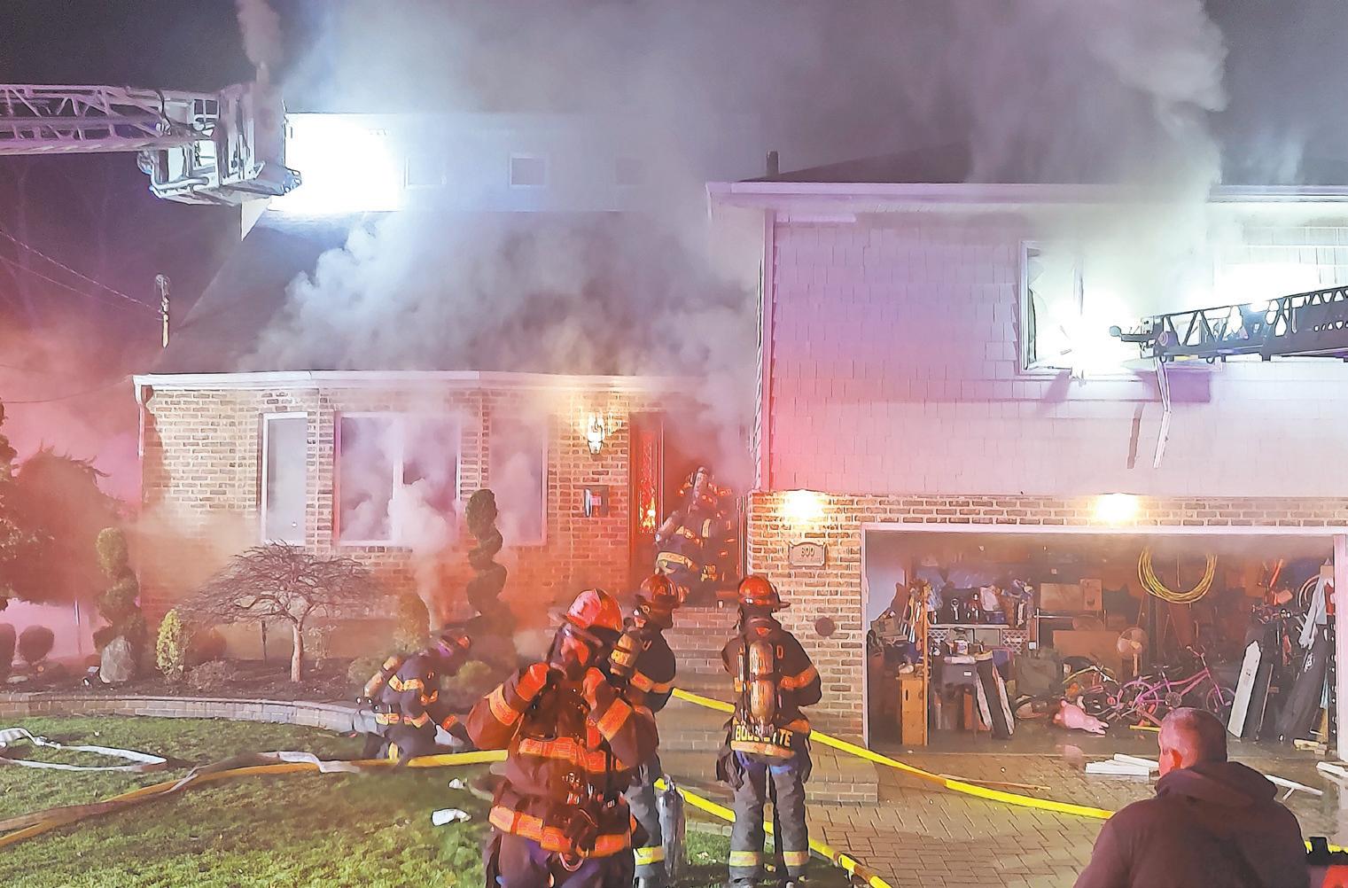 worked to extinguish the blaze. The Nassau County Fire Marshal’s Office and the Arson Bomb Squad also responded. Two firefighters were taken to a local hospital with injuries, police said. No other injuries were reported. The cause of the fire remains under investigation.