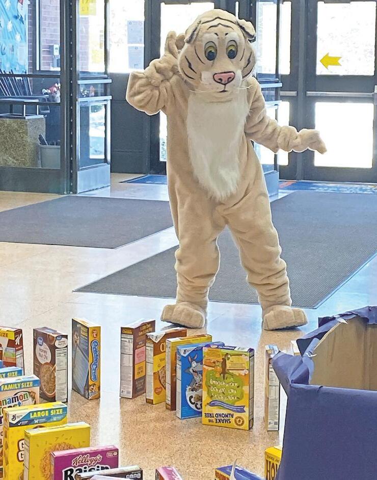 Throughout the cereal challenge, volunteers from the high school Key Club and the adult Kiwanis Club helped make the event possible — as well as their classmates. Throughout the food drive, Barnum Woods’ Continued on page 6