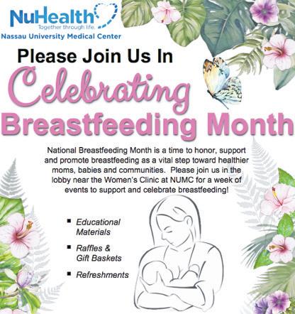 In recognition of National Breastfeeding Month, Nassau University Medical Center will host a series of events from Aug. 4 to Aug. 7 to support and celebrate breastfeeding as a step toward healthier moms, babies, and communities.